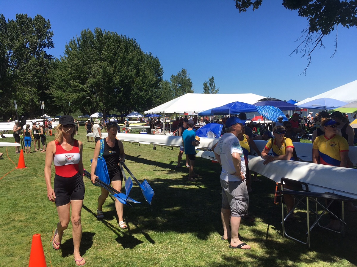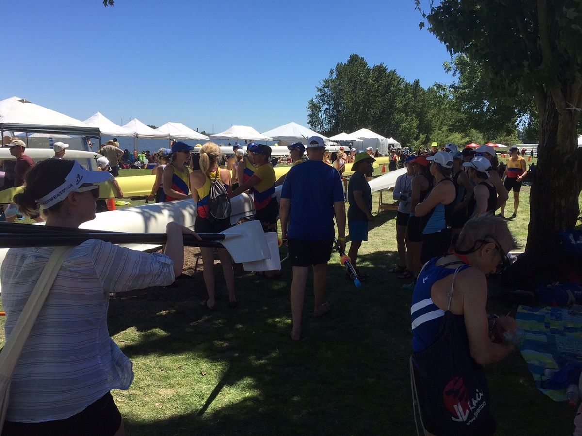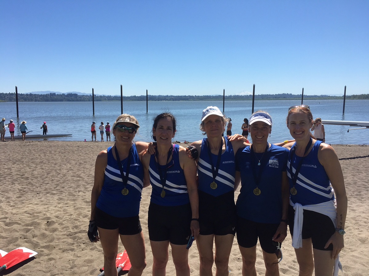 Carol, Lori Jensen, Celia Heron, Dorothy, and Shana Ferguson (our cox) with their medals