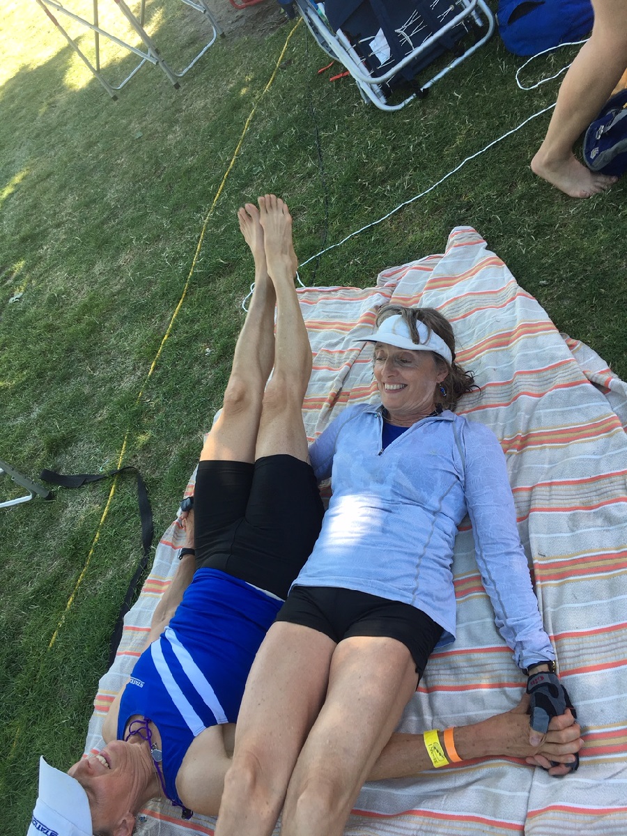Dorothy and Carol finishing their "legs up" exercise