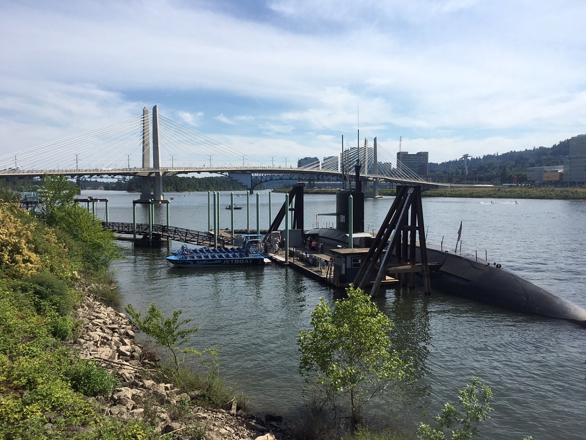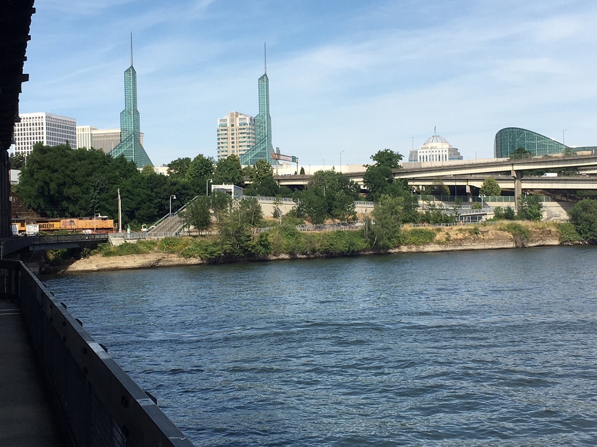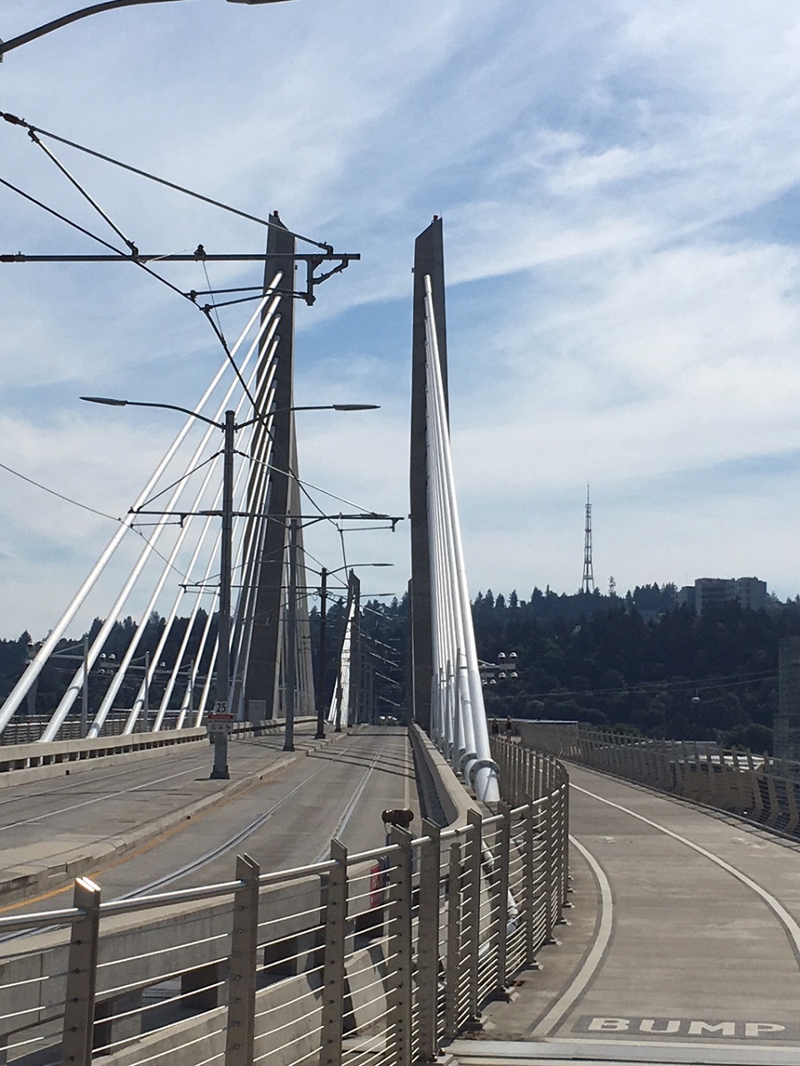 Looking west about to cross the Tilkum Crossing bridge