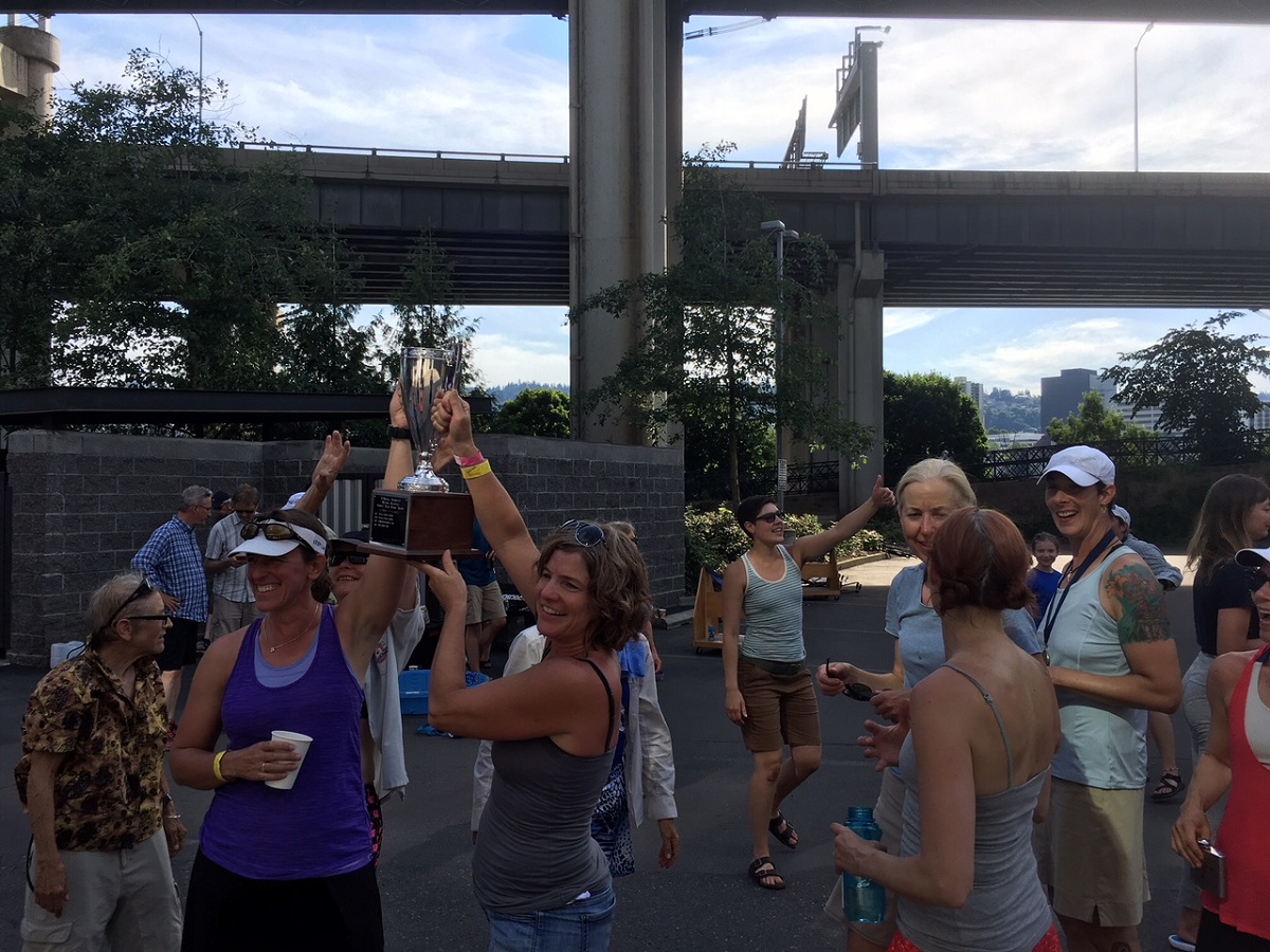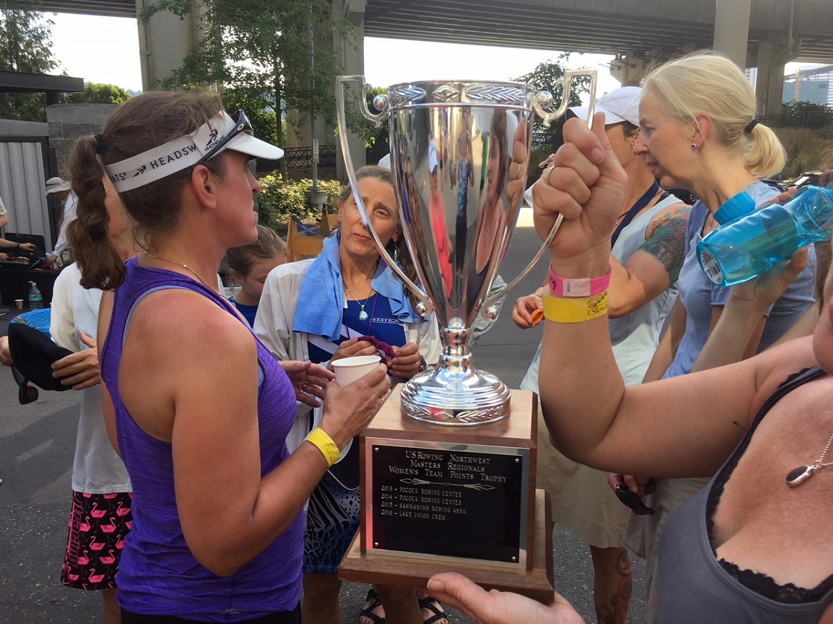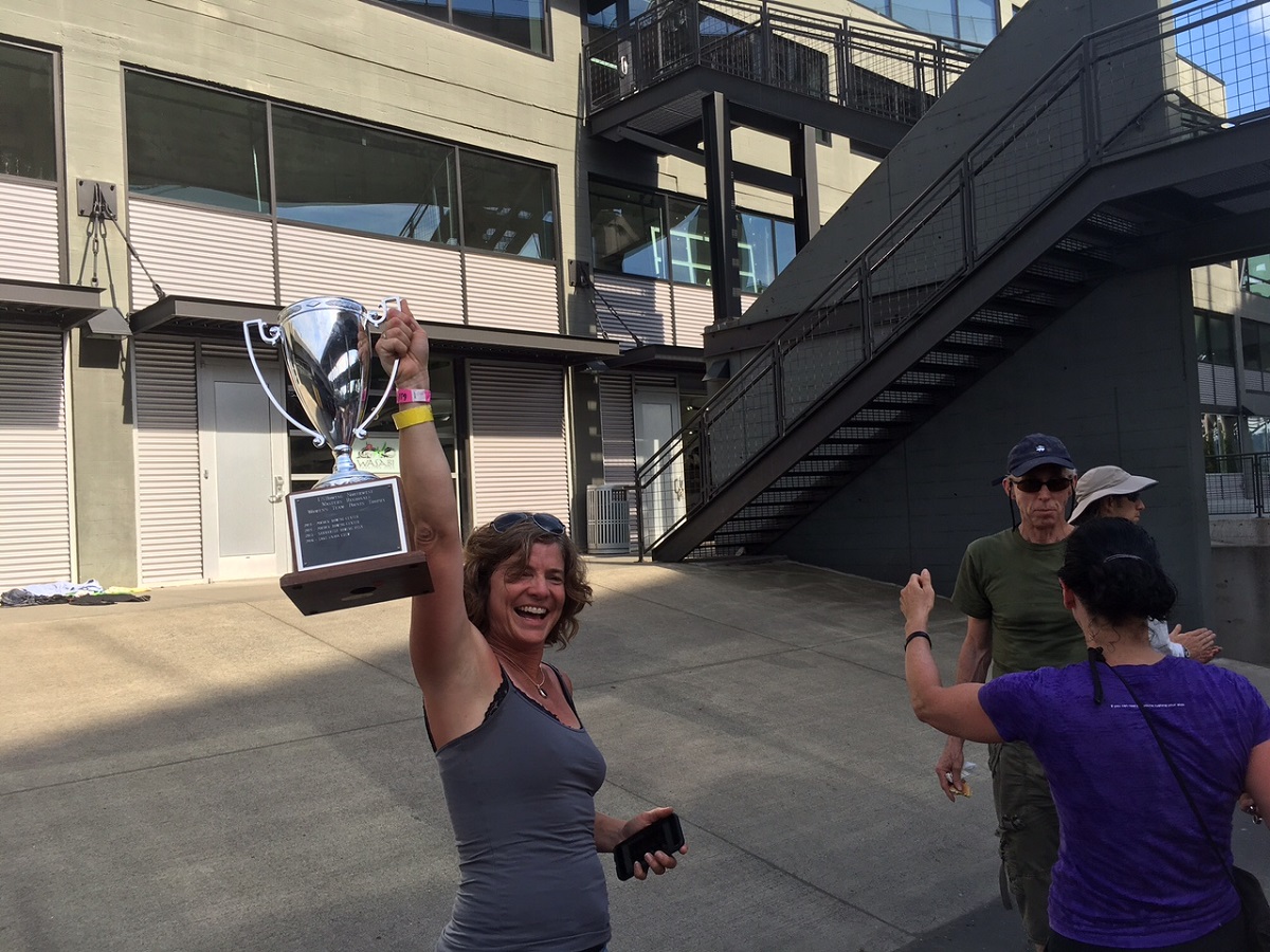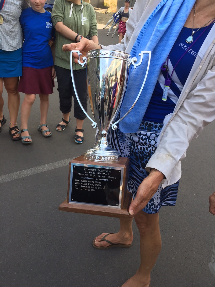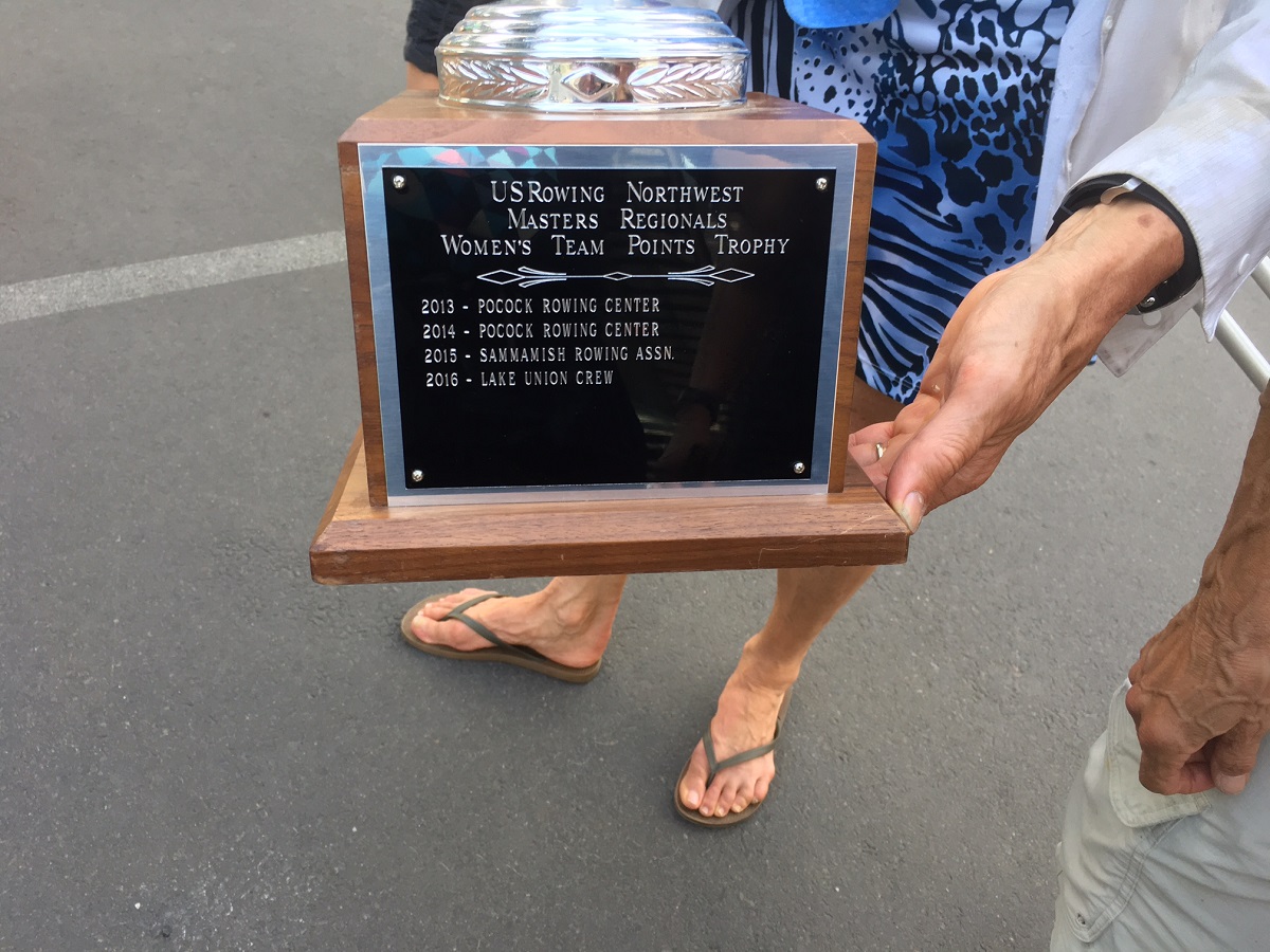 Holding up the trophy