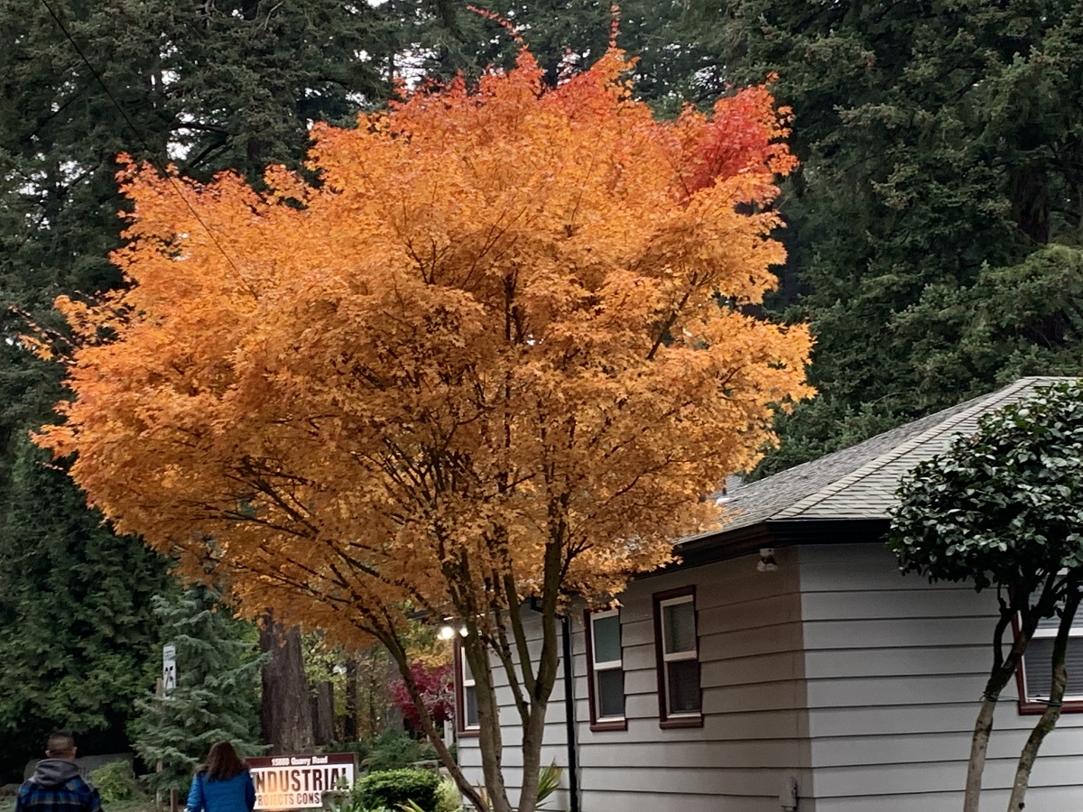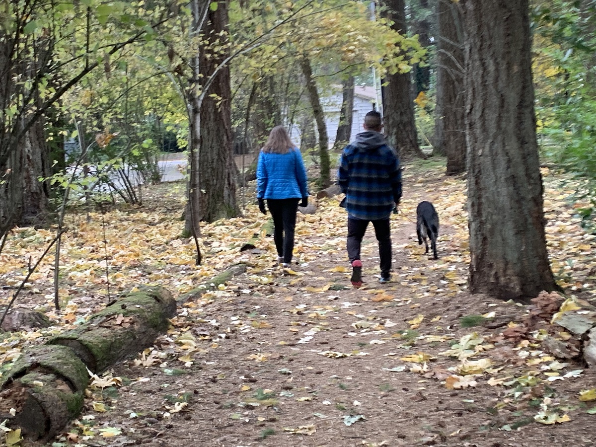 Walking with Dorothy, Duncan and Kahula. Seeing orange maple trees