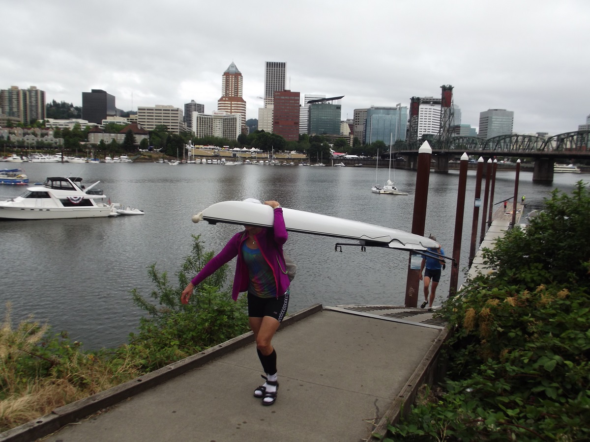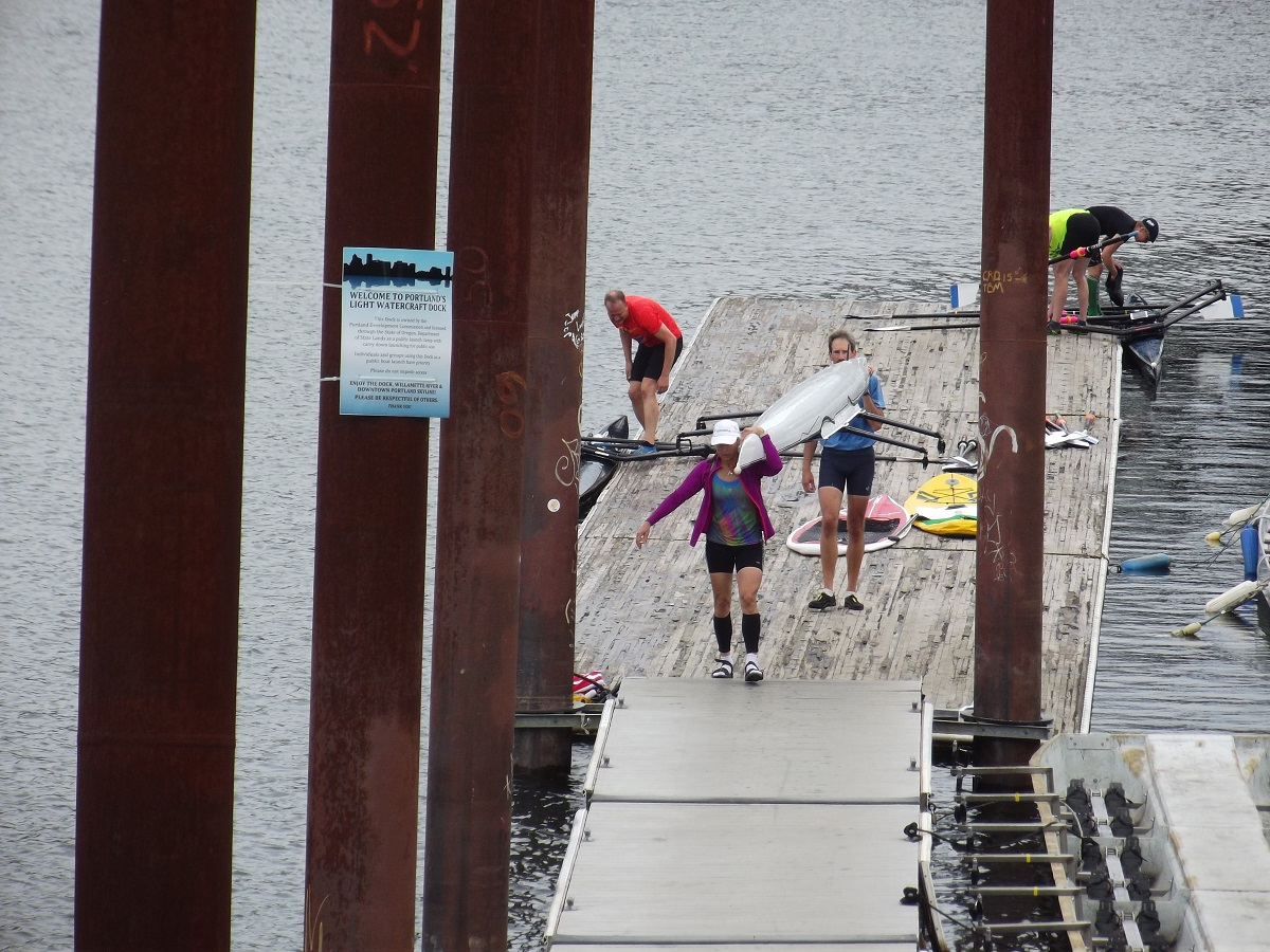 Dorothy and Geoff Norcross hauling a double up the ramp from the dock