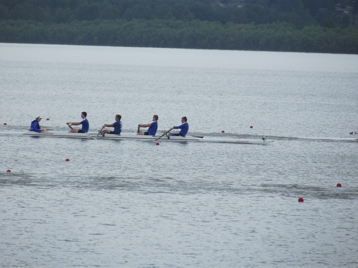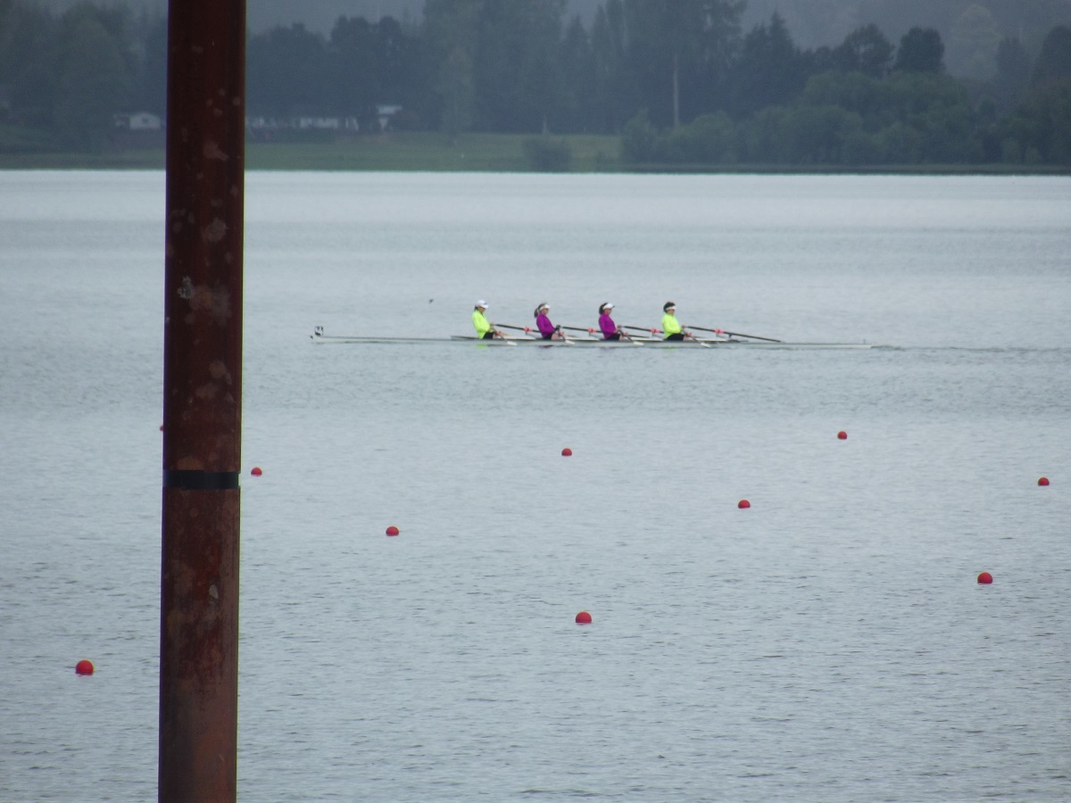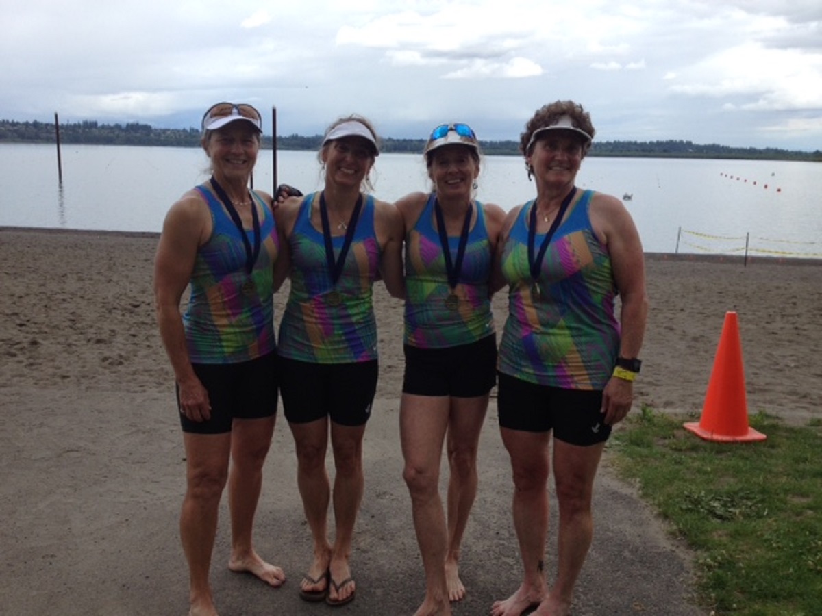 Rowing to the start: From right to left: Linda Brumder, Dorothy, Carol, and Evelyn Hamann