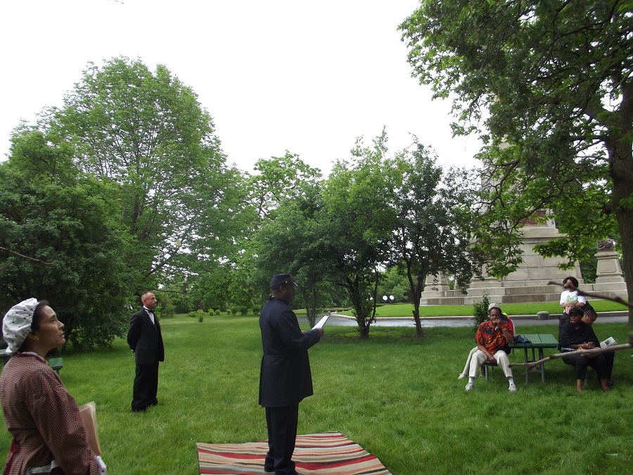 Dale & Bill Luksha with a group of mostly Afro-Americans by Douglas Tomb Monument. They were celebrating the anniversary of June 10th