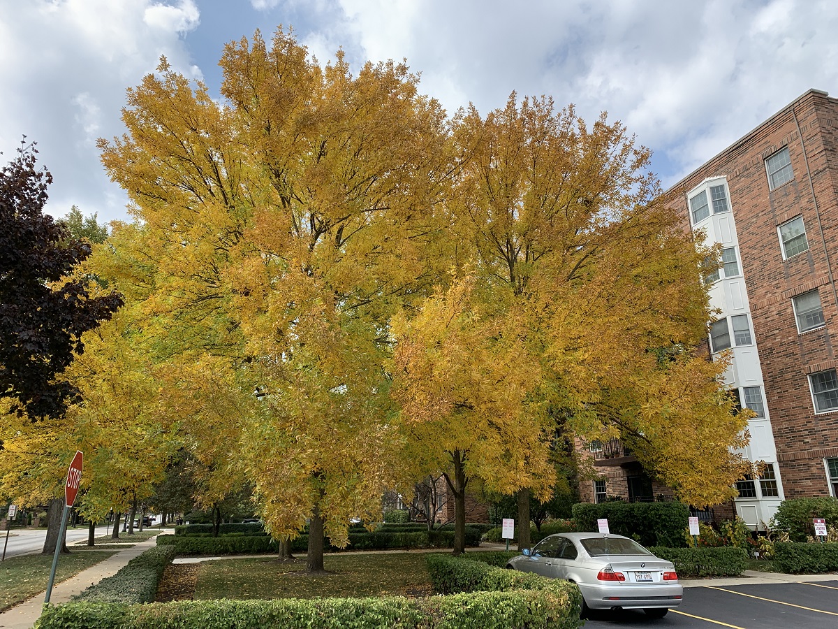 Bright yellow locust trees along Lake just east of Maple