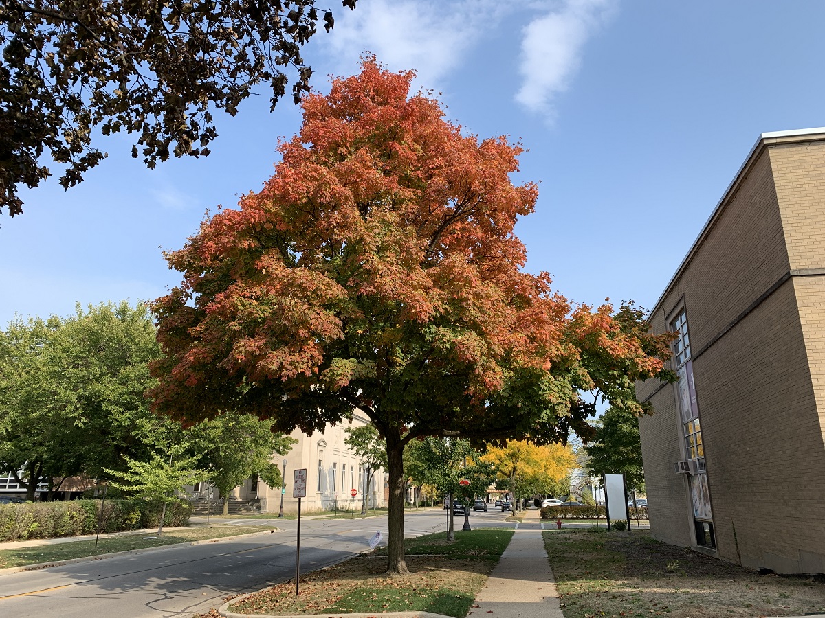Bright orange tree south side of Lake just west of Maple