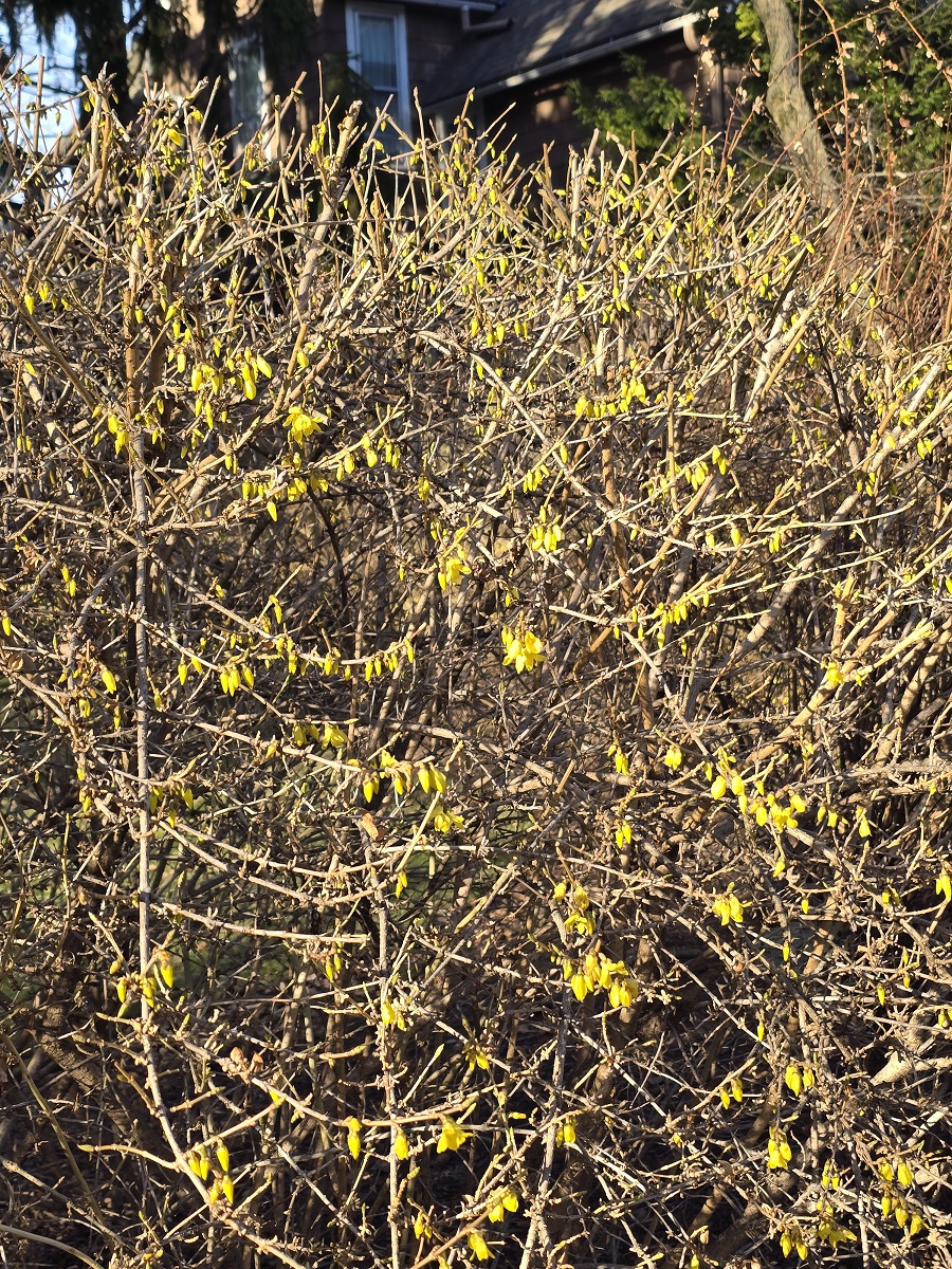 Bush with beginning of forsythia
