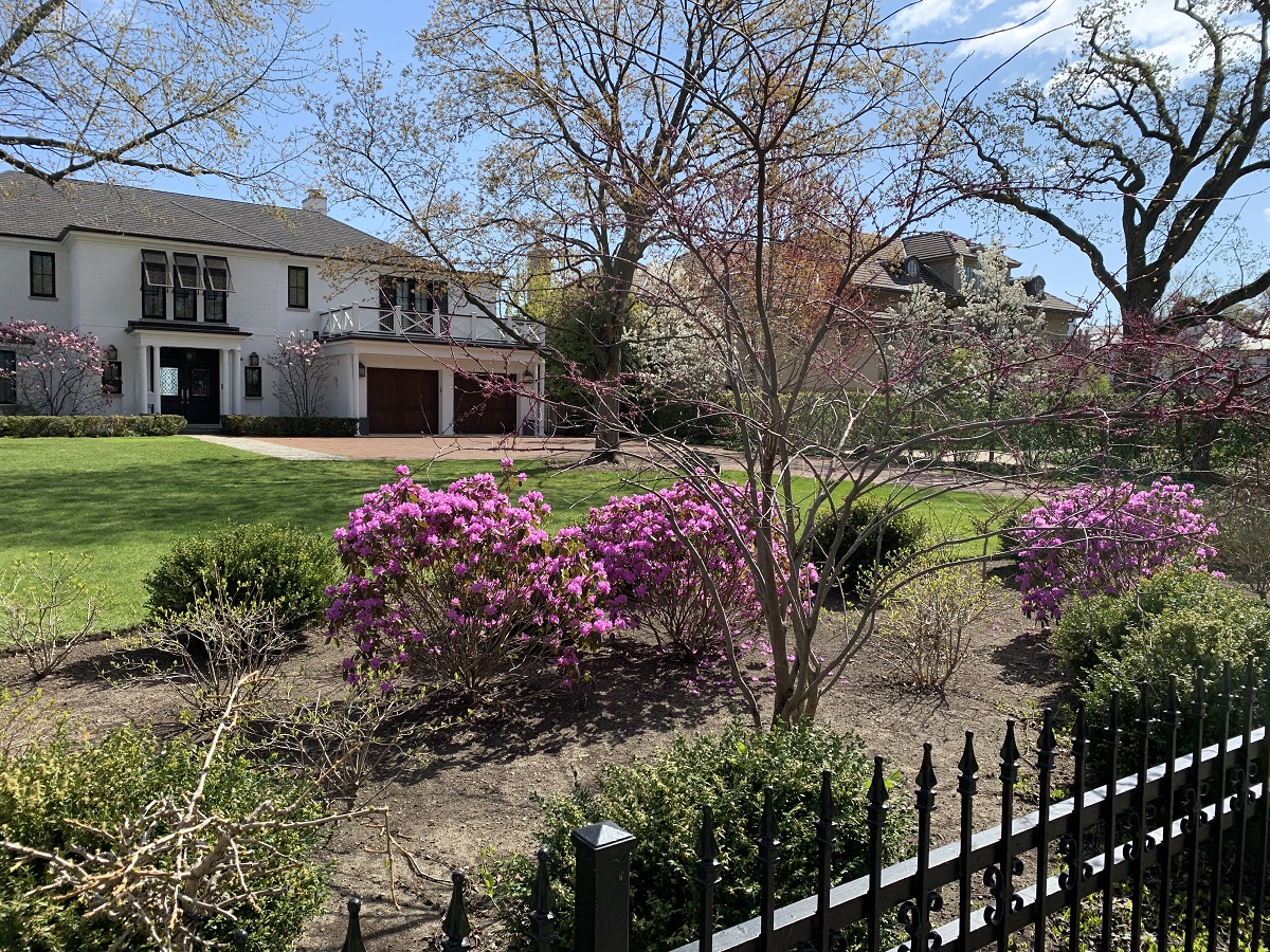 Purple bushes, magnolias and crab apples along Michigan Avenue