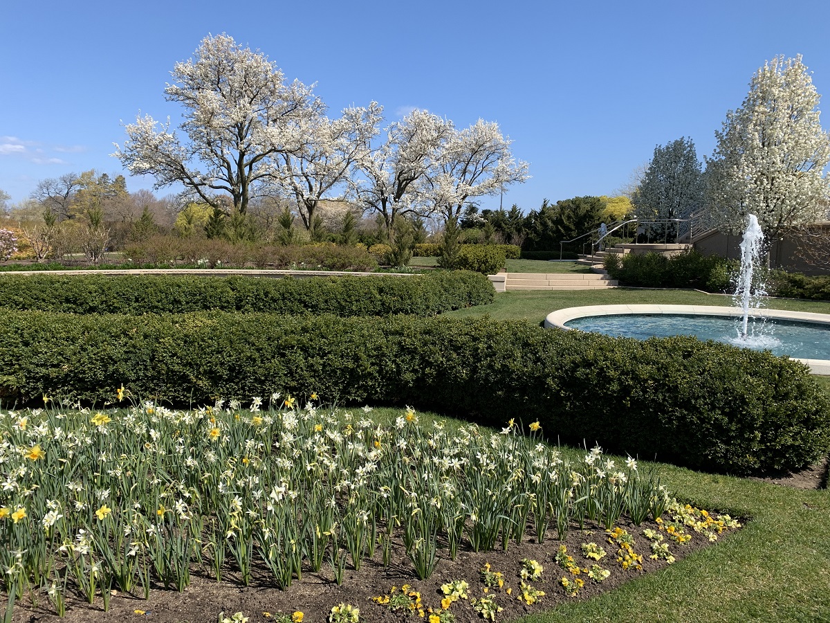 Narcissis, daffodils, flowers, crab apples and forsythia by Baha'i Temple
