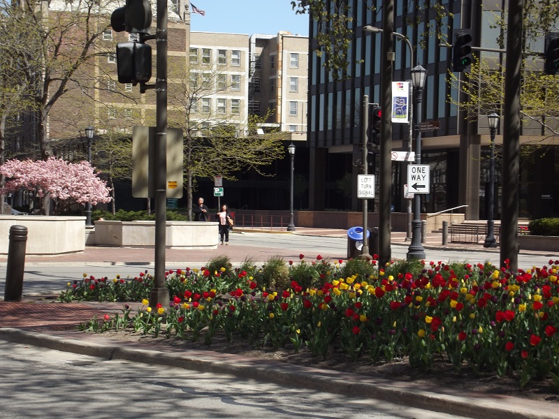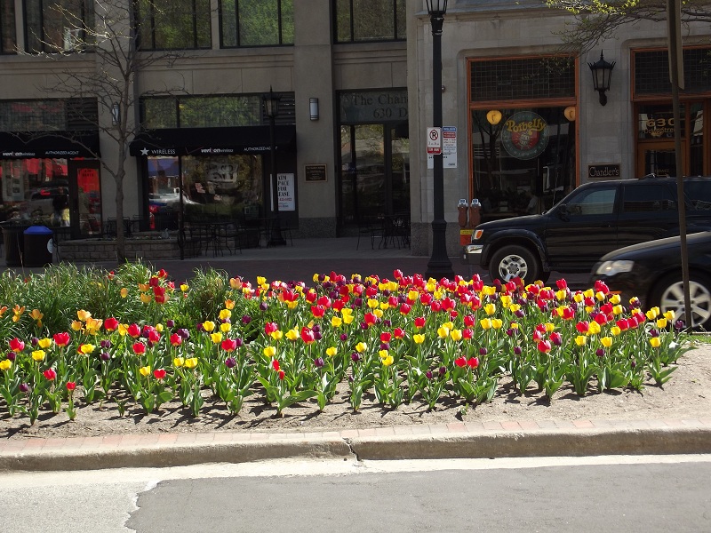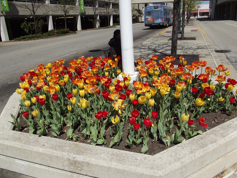 Tulips in Sherman Avenue boulevard in front of Andy's Condo