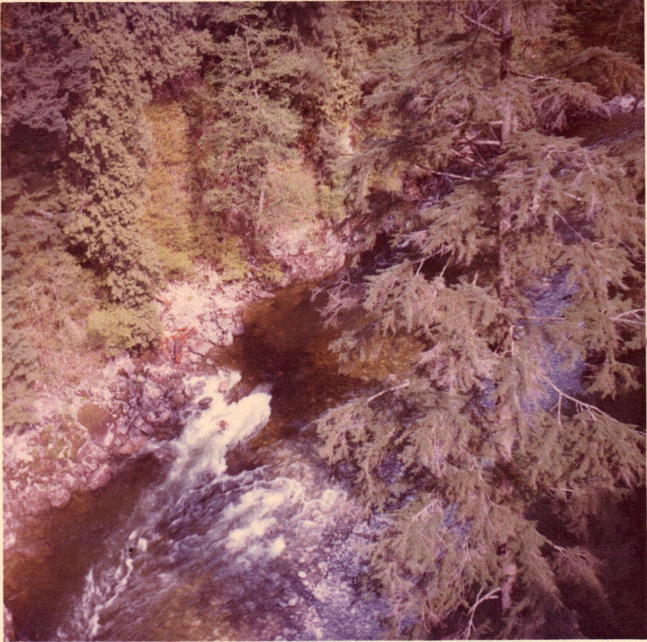 Looking down into creek from bridge at Vancouver -- May, 1973