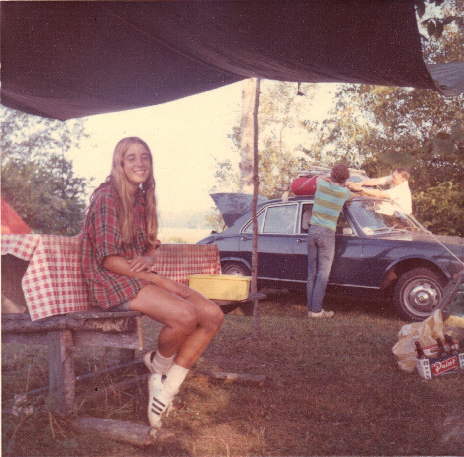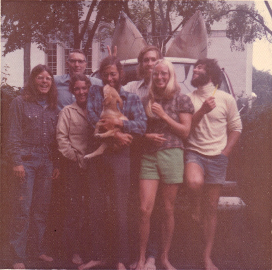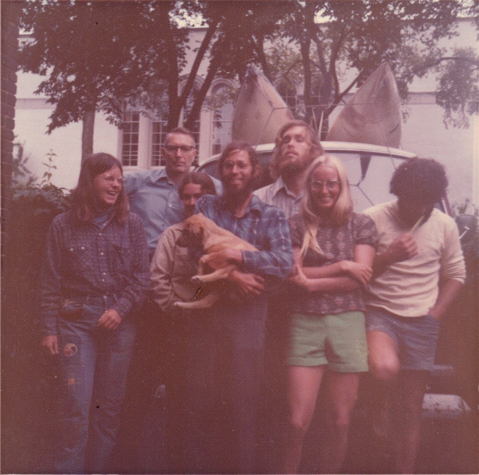 Carol and friends leaving to kayak, Evanston -- 1973