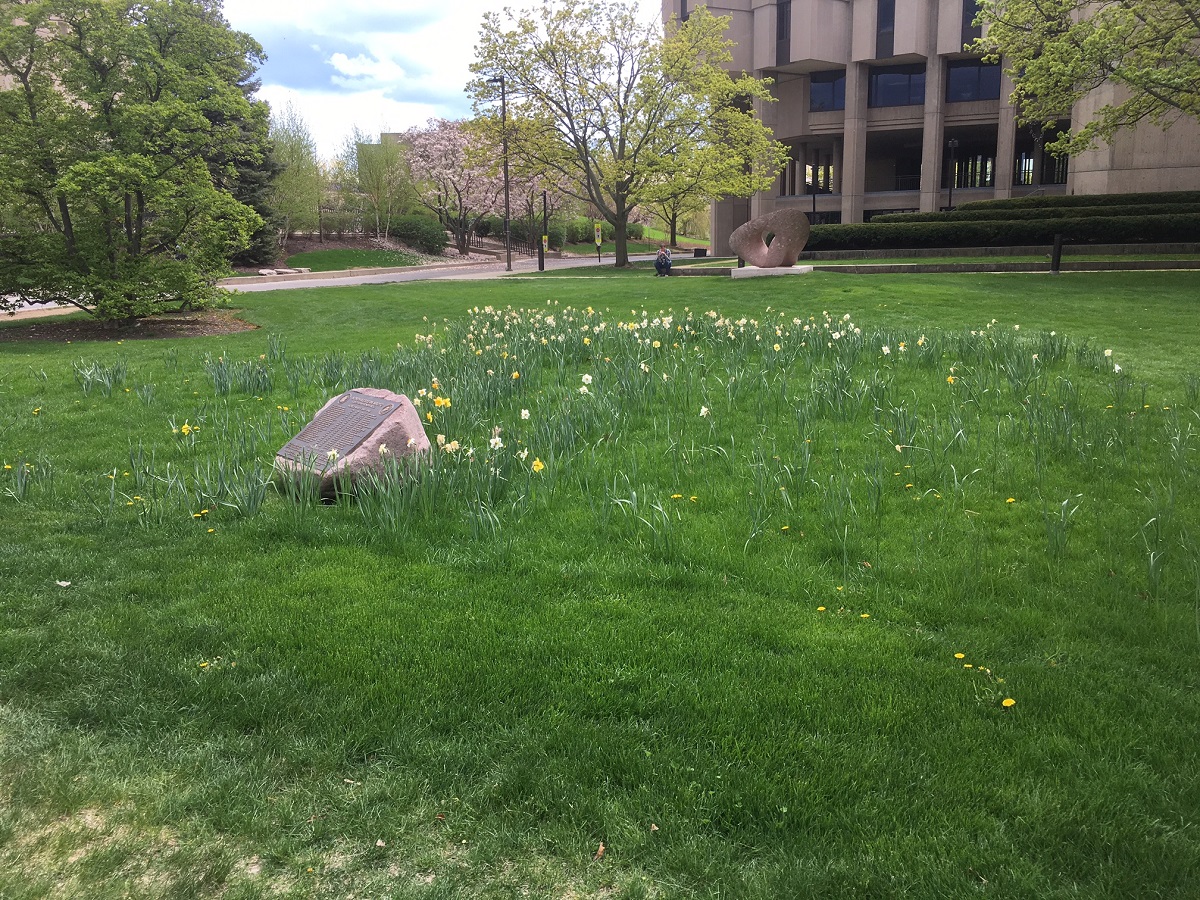 Daffodyls and a magnolia between Norris Center and the library