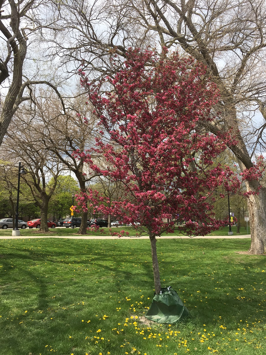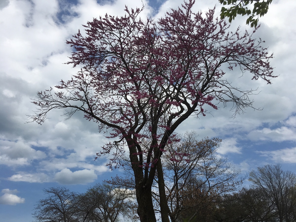 A redbud tree just south of Dempster Street