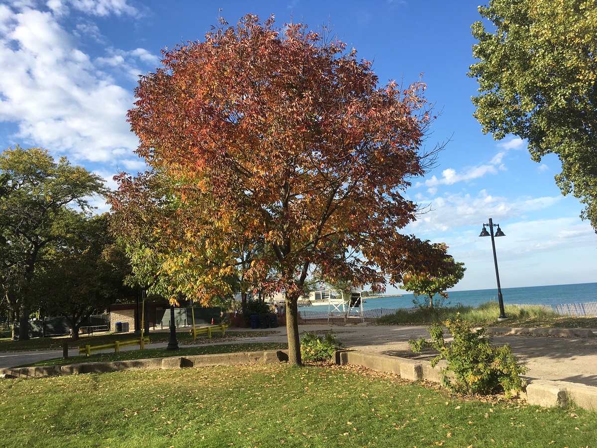 Beautiful red/purple tree near Greenwood Beach in Evanston