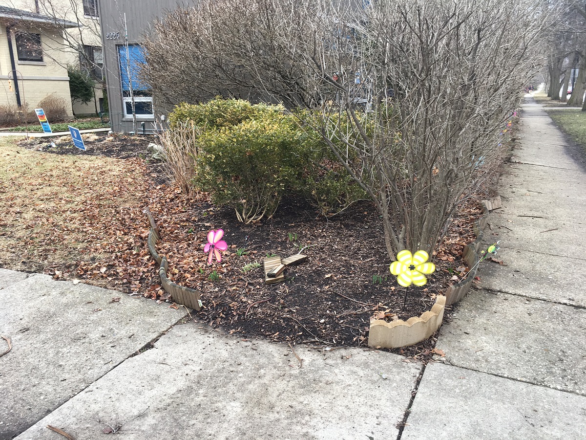Colorful windmills on Noyes Street