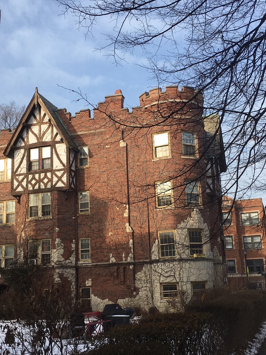 Walking north on Sherman Avenue to "Castle" condo just south of Noyes Street -- January 9, 2018