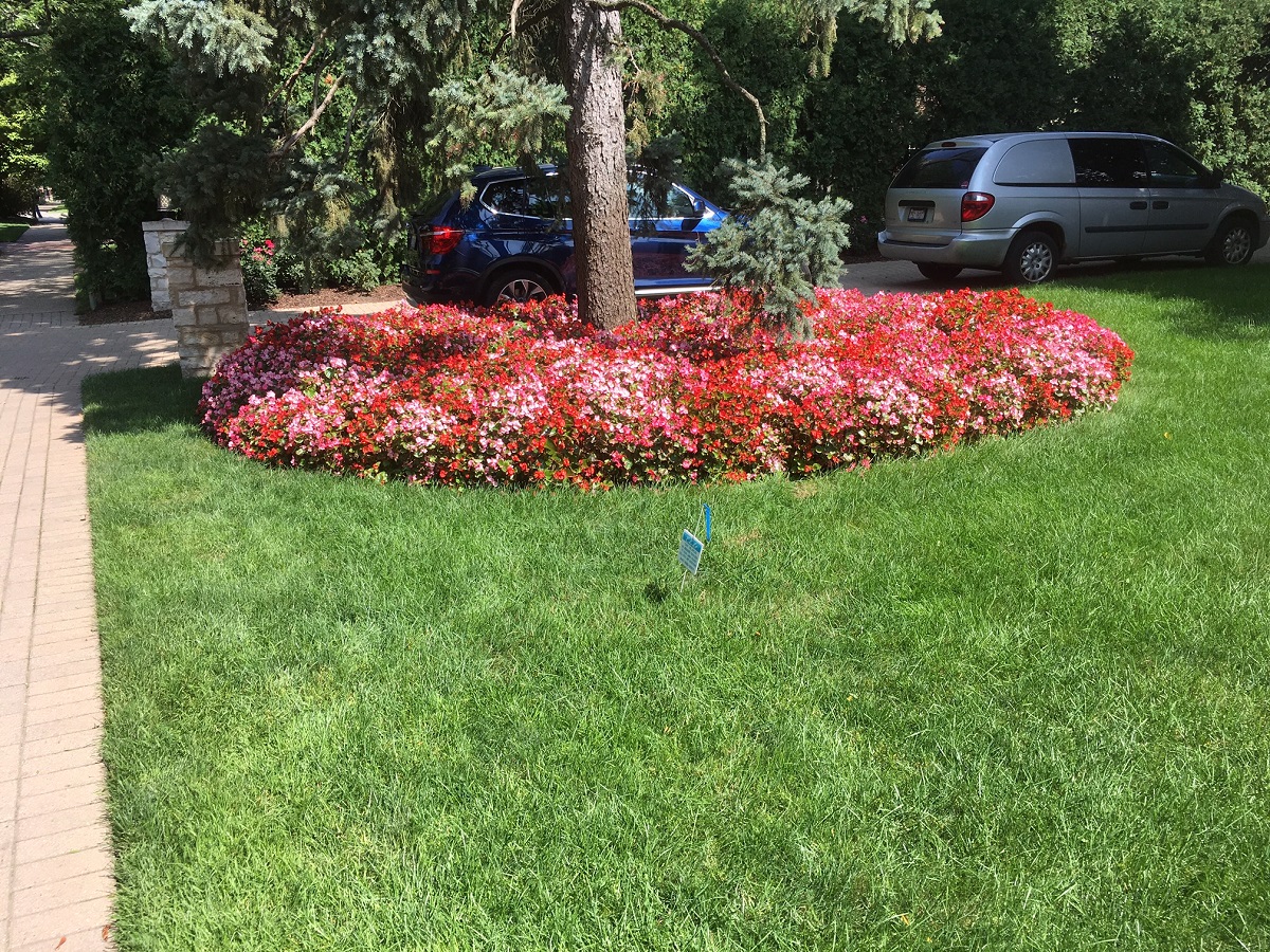 Flowers around tree in Edgemere Court
