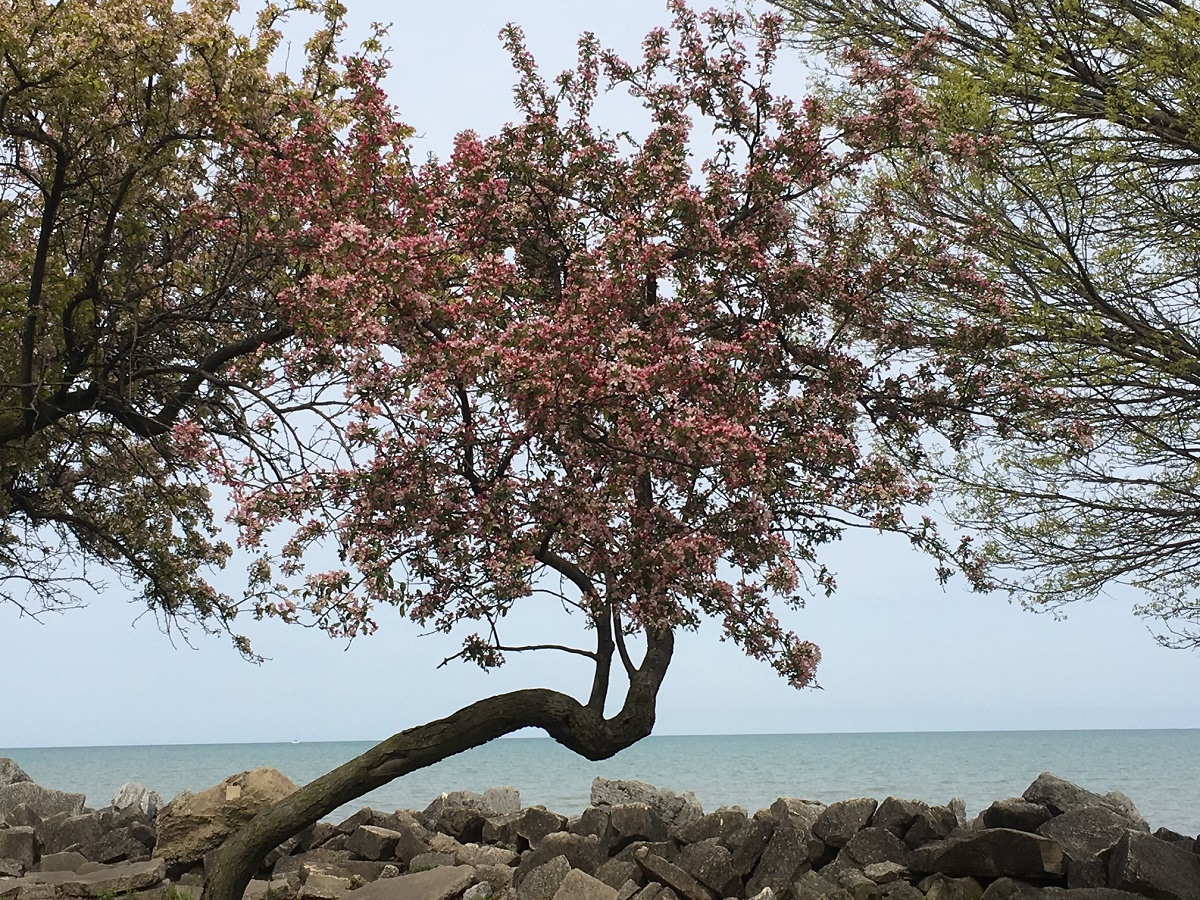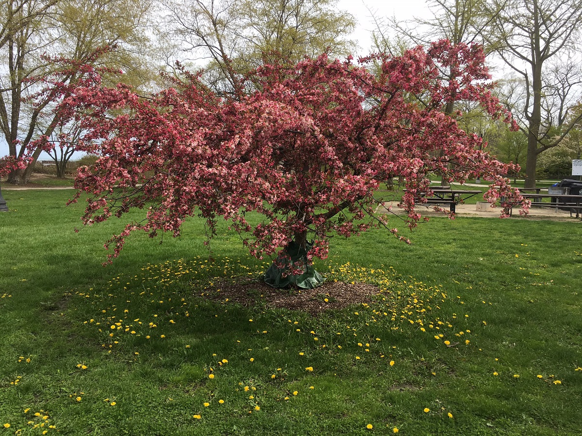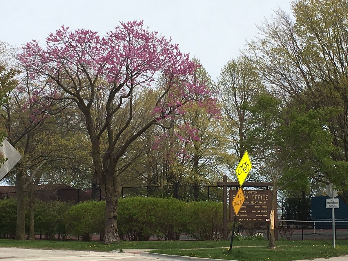 Pink tree in Elliot Park -- between Dempster and Lee Beach
