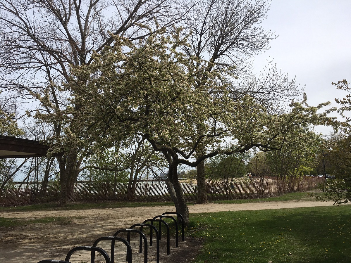 White tree is Elliott Park -- a little more of downtown Chicago with Willis Tower can be seen at far left