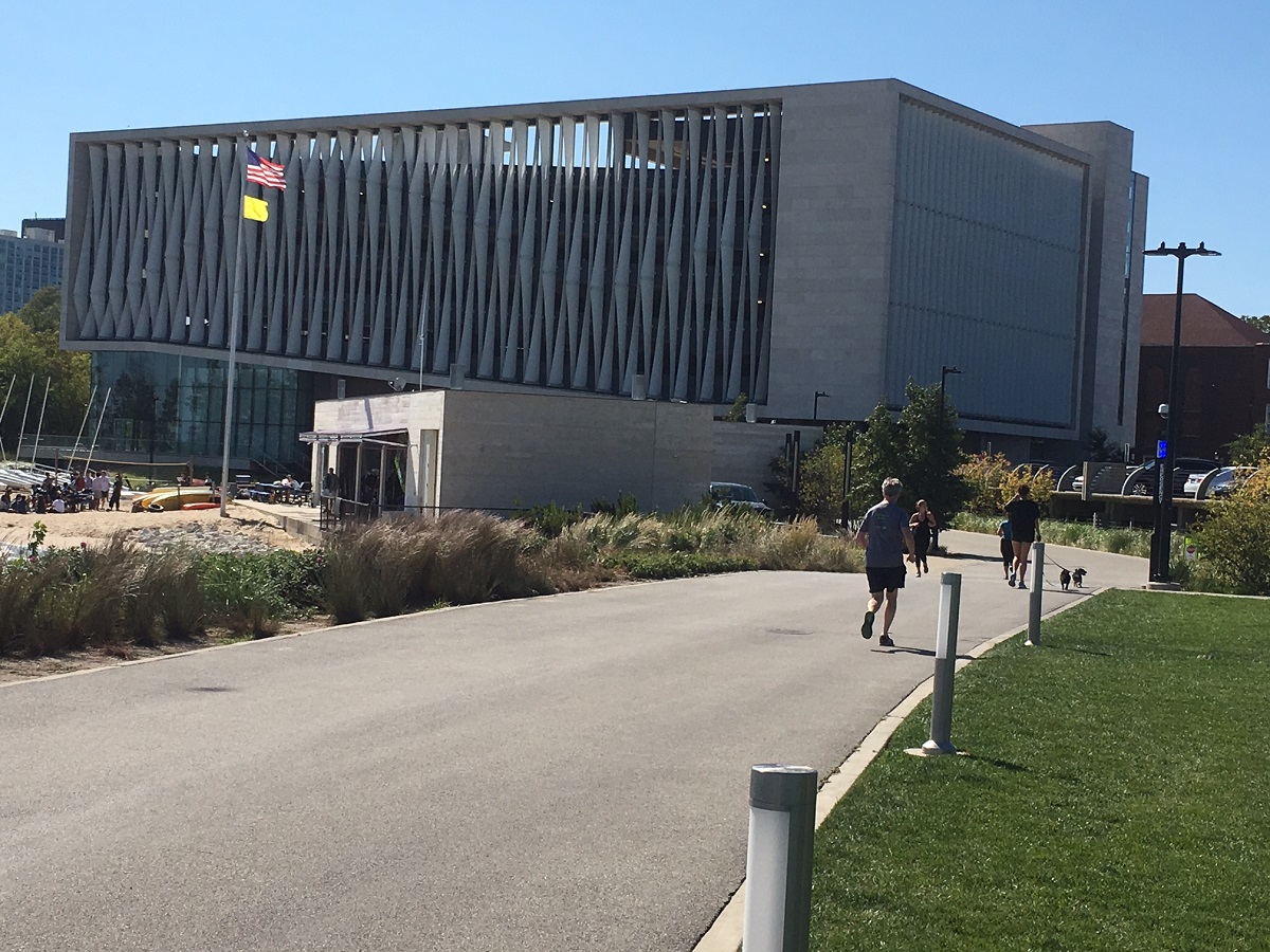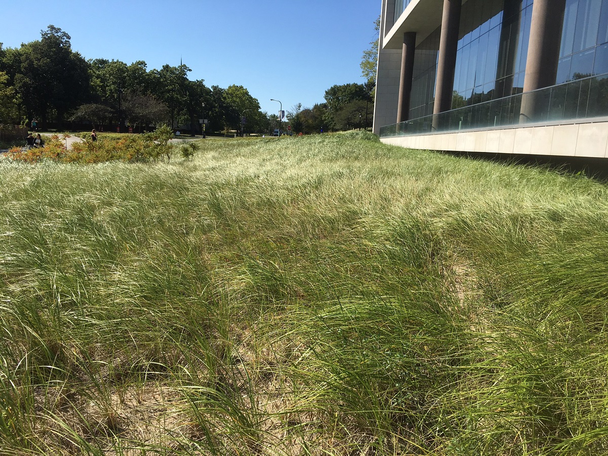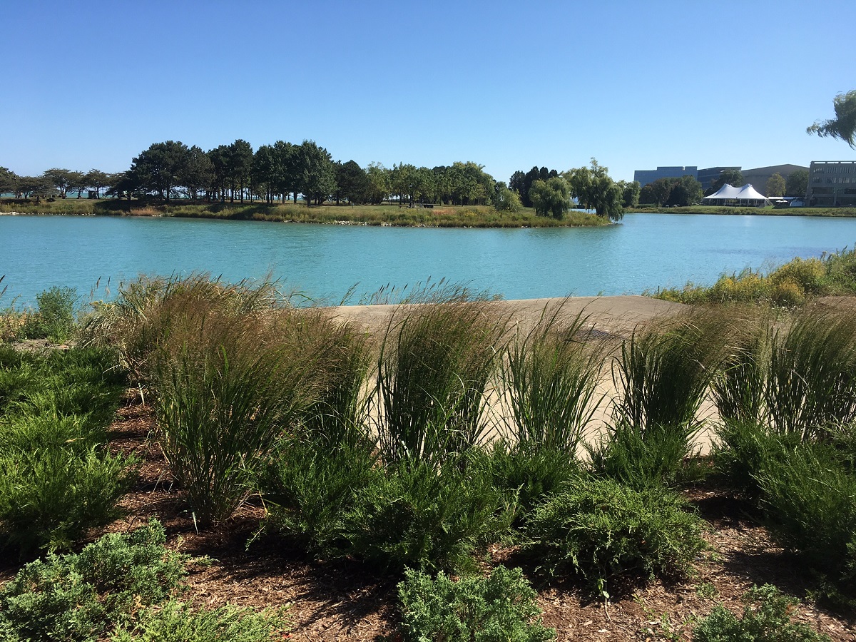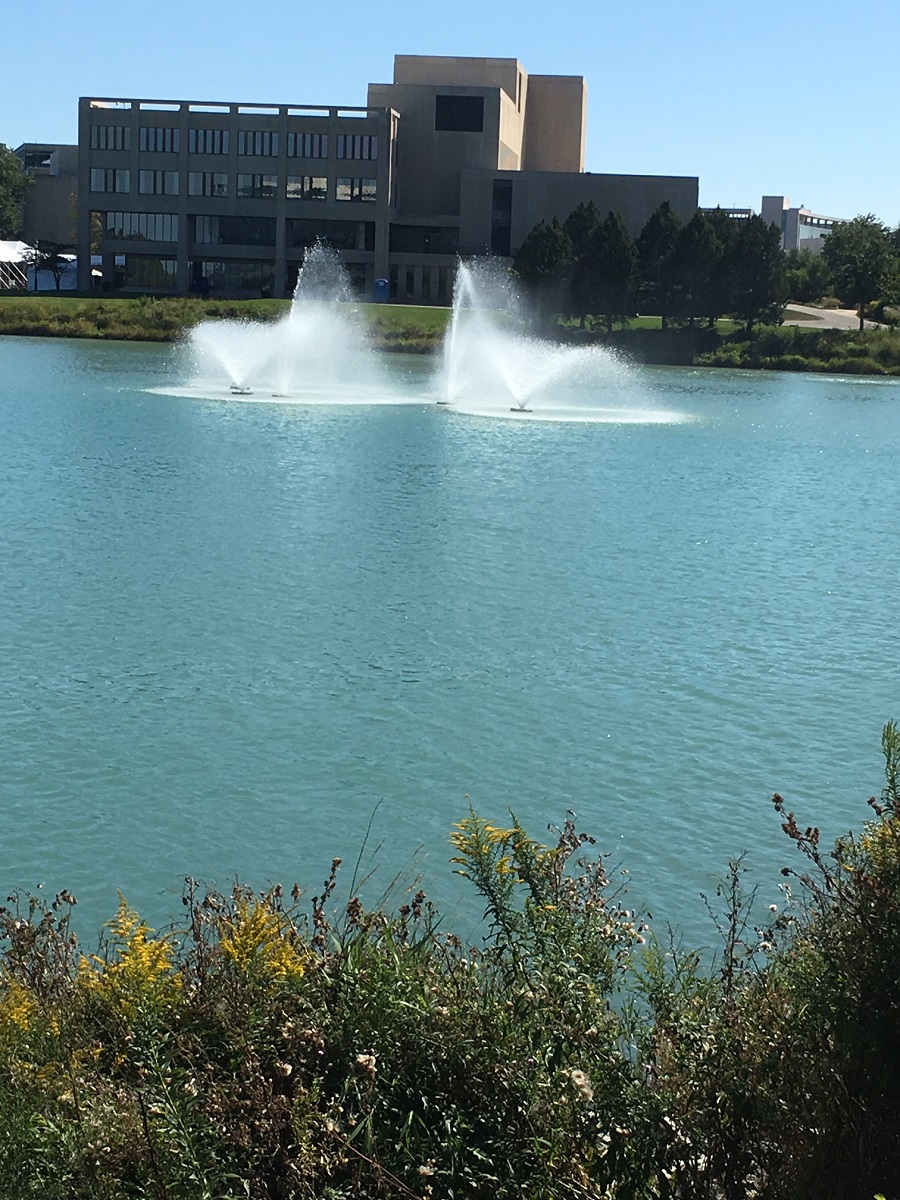 High bush turning yellow and orange by the old double deck parking lot and the new parking garage