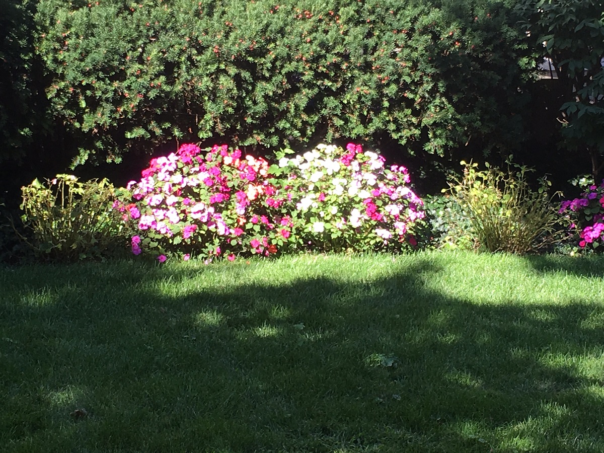 Flowers all sunlit west of Davis St.