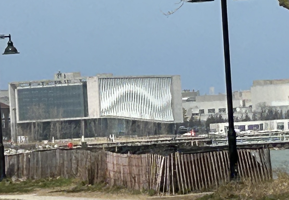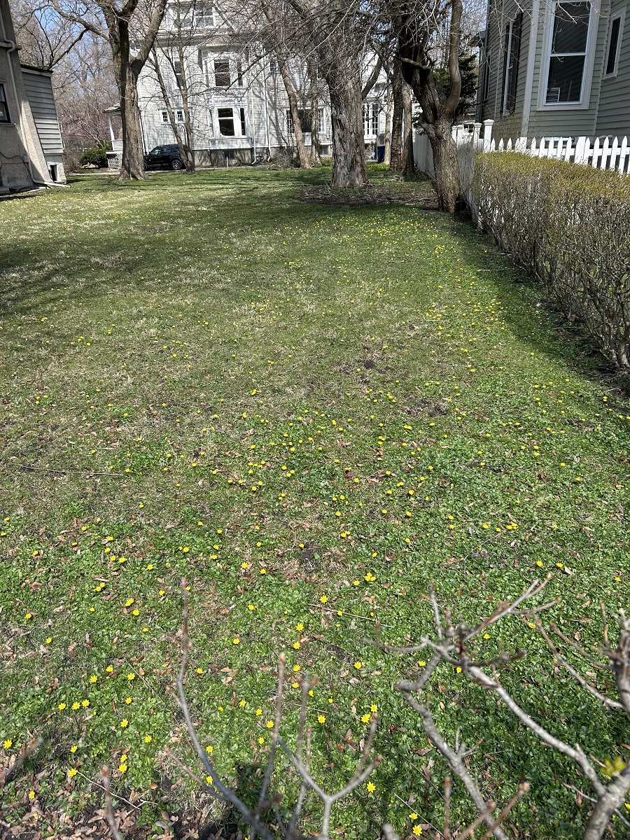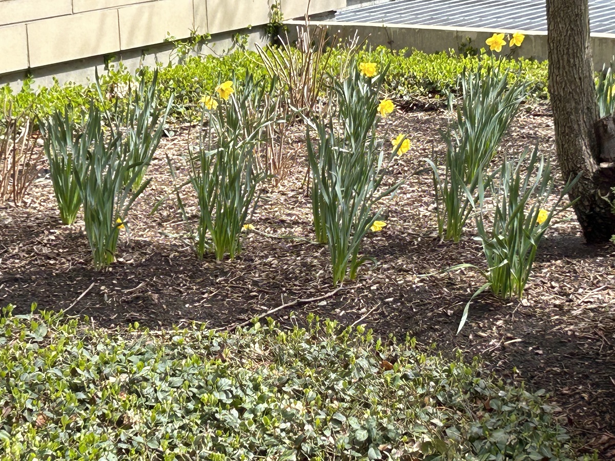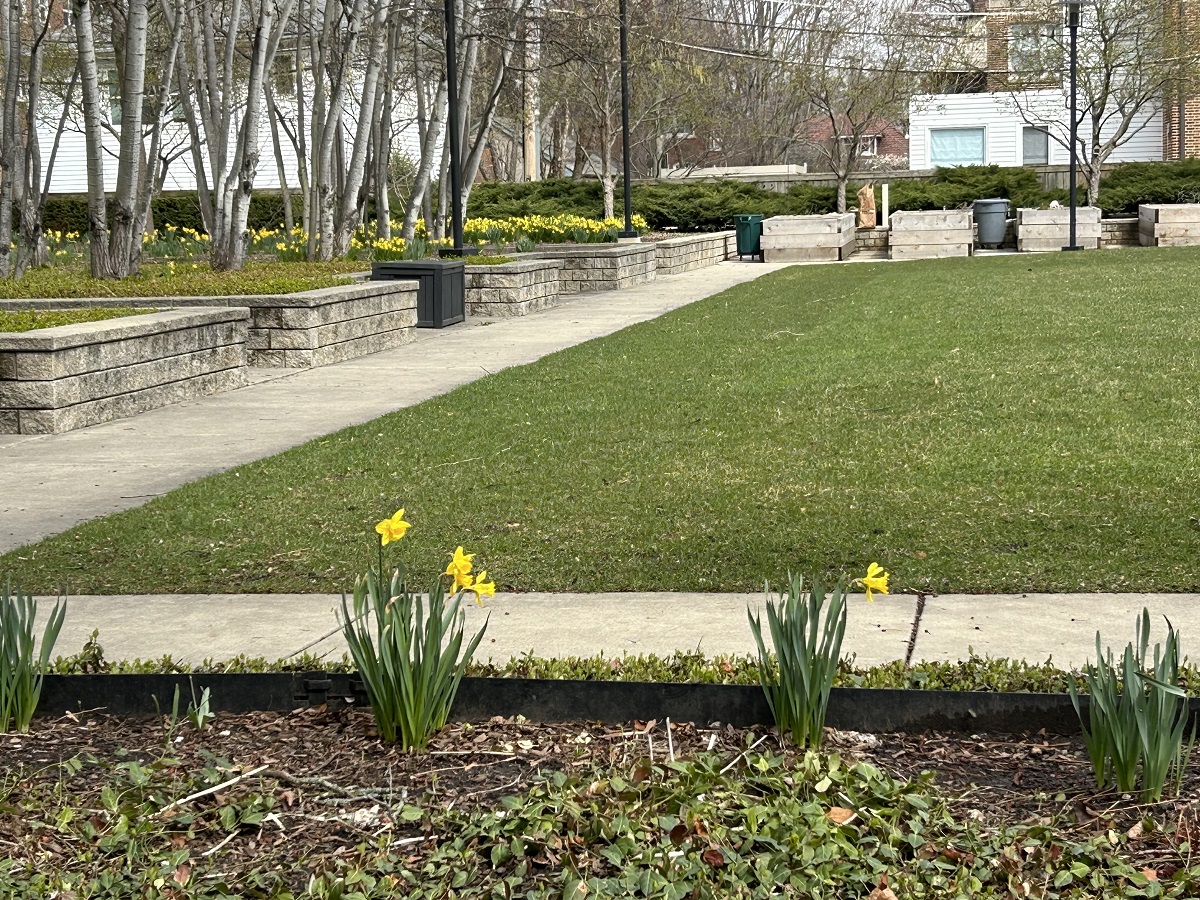 Beginning of magnolia and end of forsythia by "castle" condo west of Lee Beach
