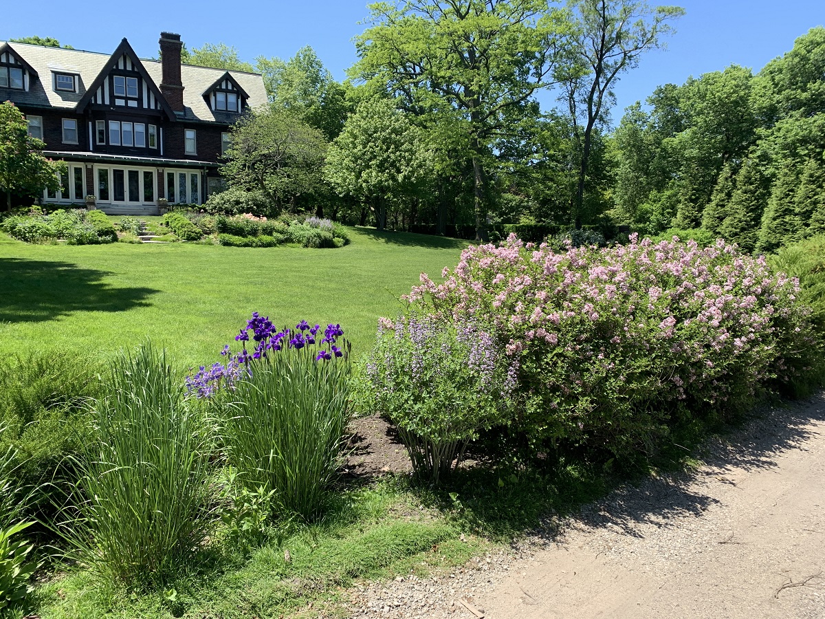 Purple iris and lilacs by mansion west of Greenwood Beach