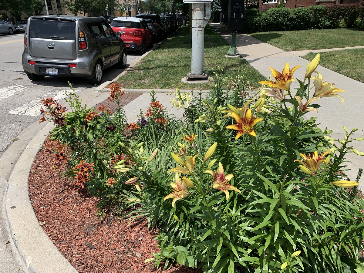 Yellow lilies along Sheridan Road
