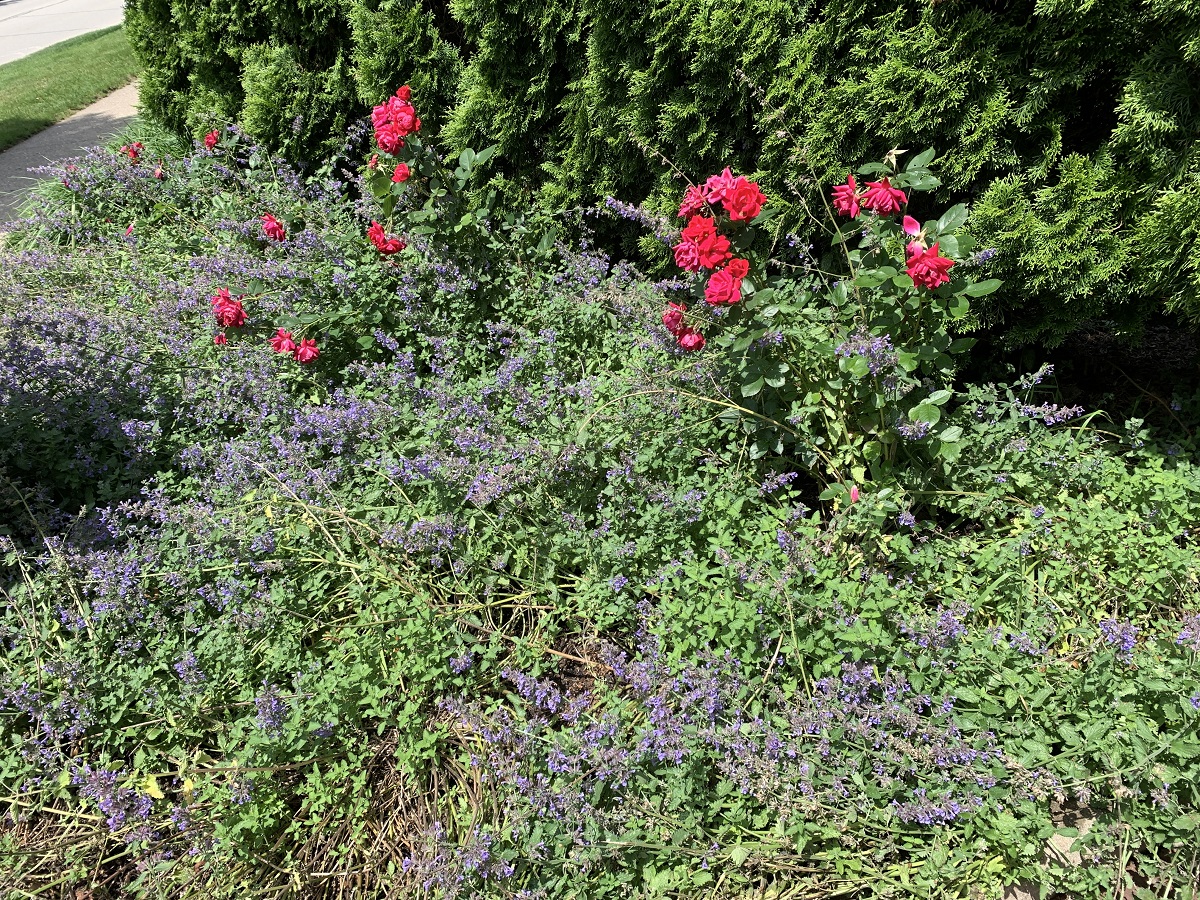 Purple flowers trim driveway on Edgemere Court