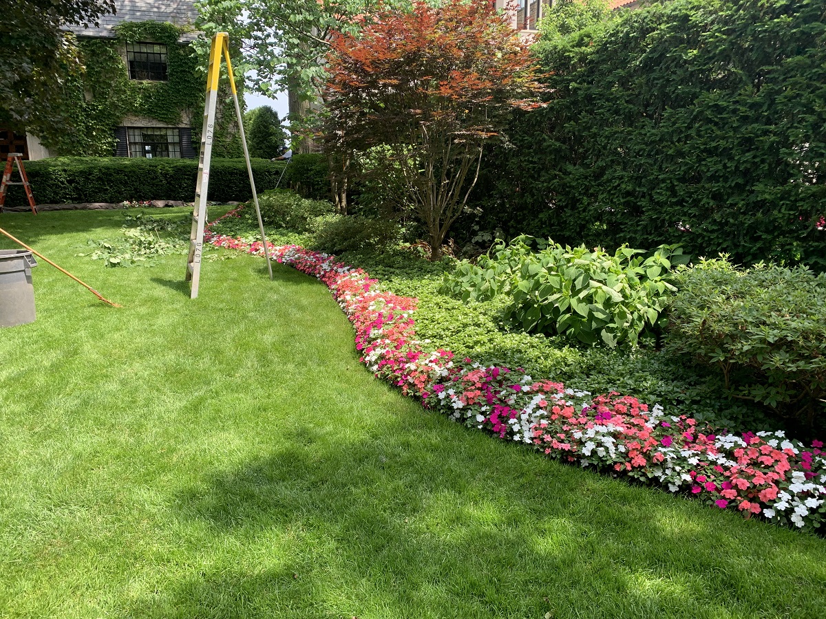 Pink and white flowers on Edgemere Court