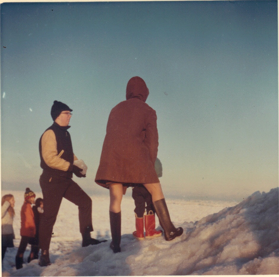 Andy with friends observing ice on Lake Michigan