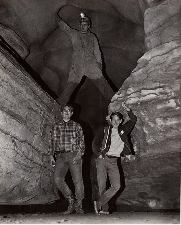Andy, Chris, and Tom above -- Andy's favourite winter/spring activity at Rose: spelunking caves