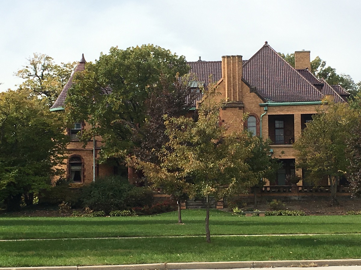 Dark yellow trees by mansions