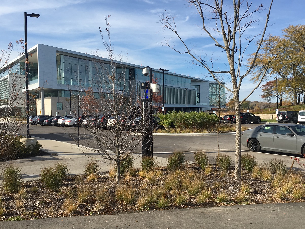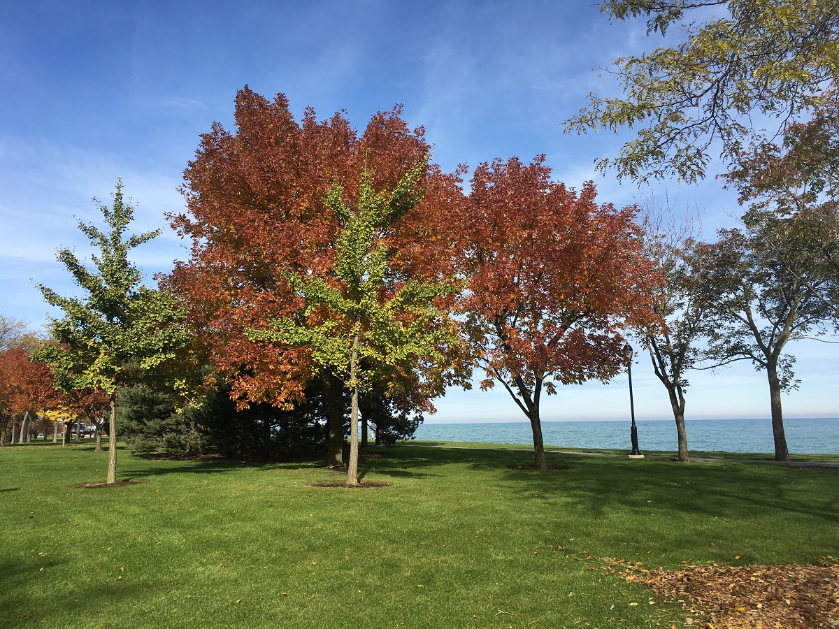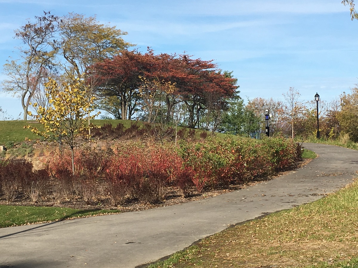 Yellow and dark purple trees on NU landfill outside its lagoon