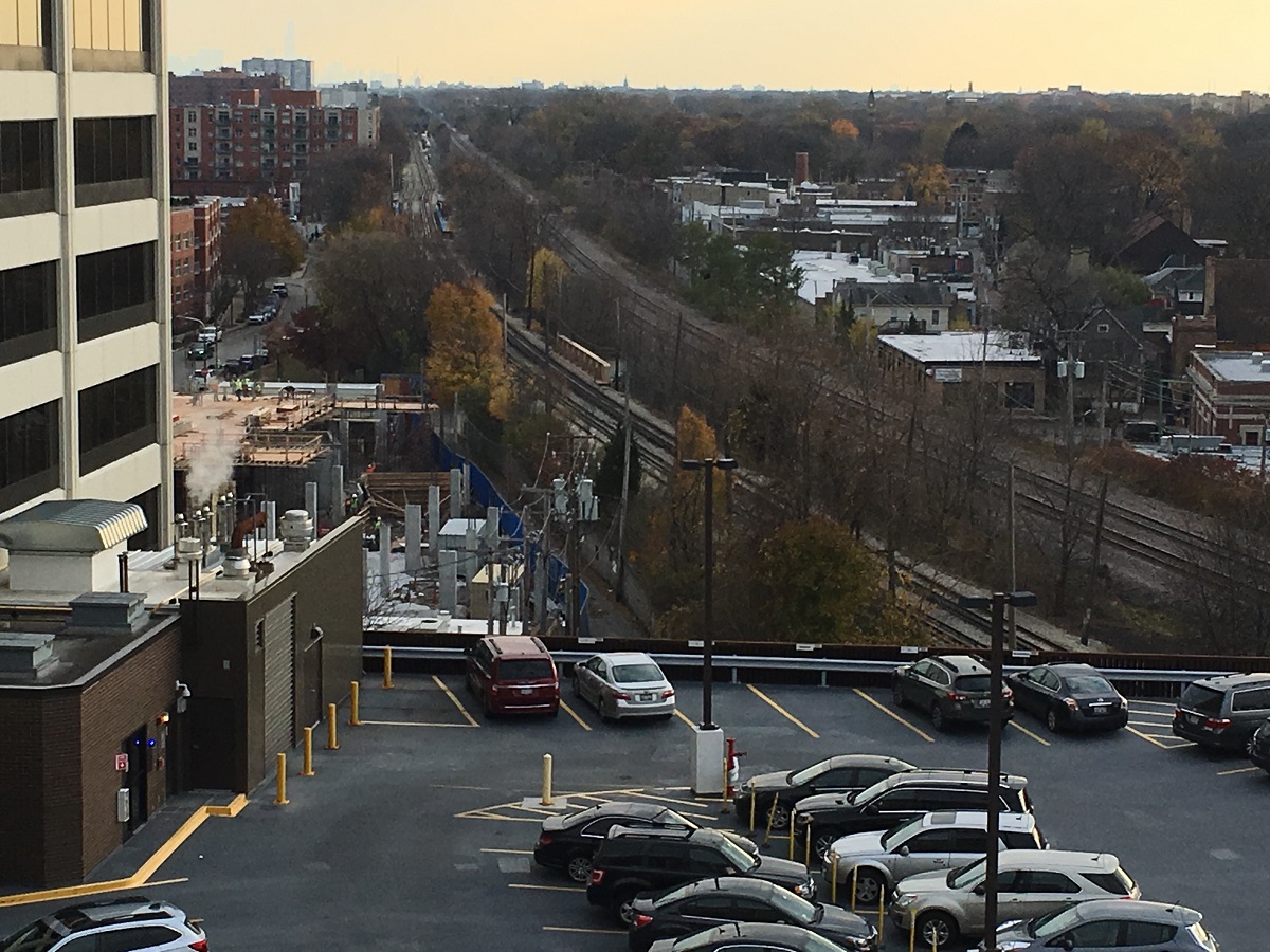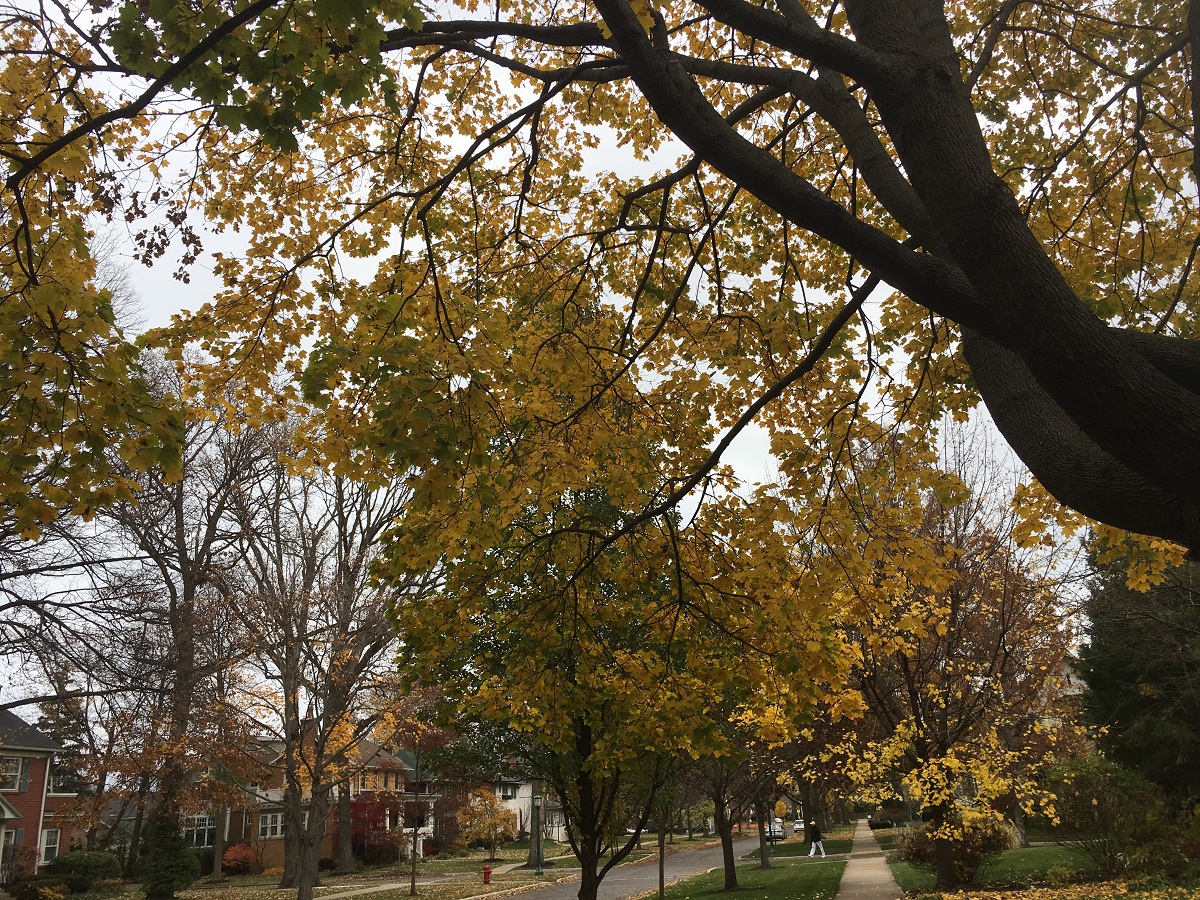 View from Andy's balcony showing only a few yellow trees left (and construction to 2nd floor of huge 15 floor building to south)
