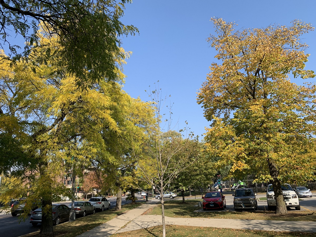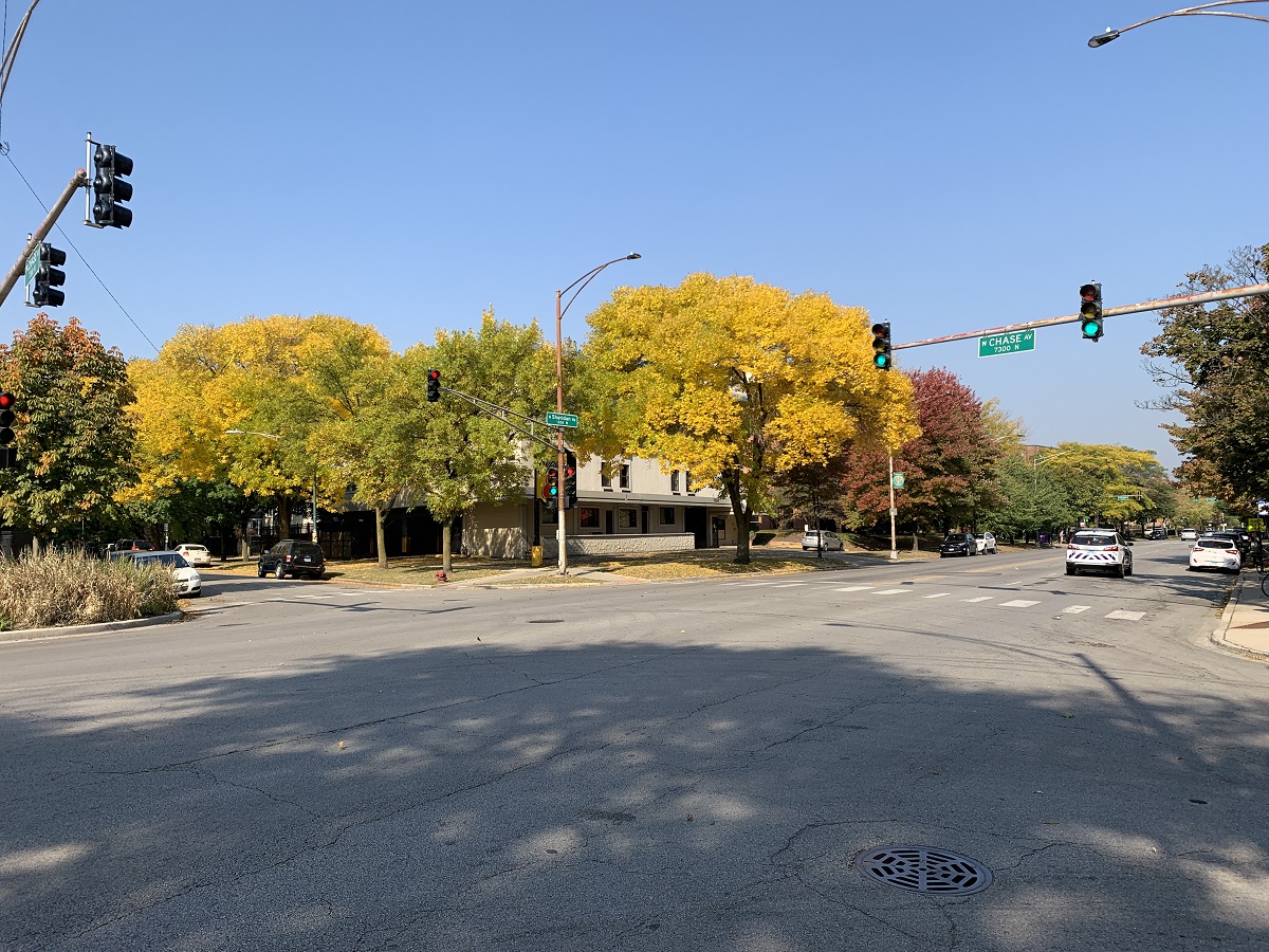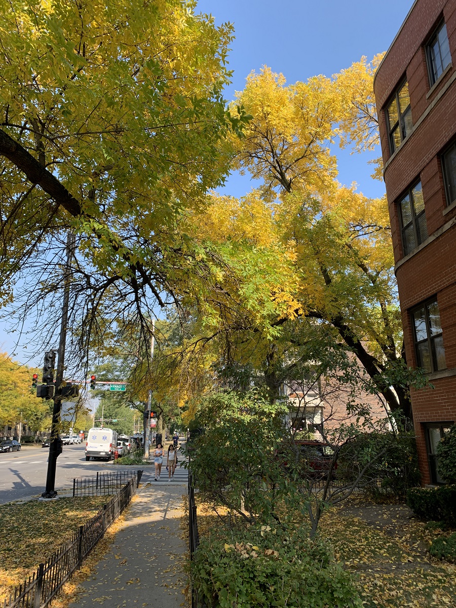 Yellow trees along Sheridan Road in Chicago just north of Loyola Park