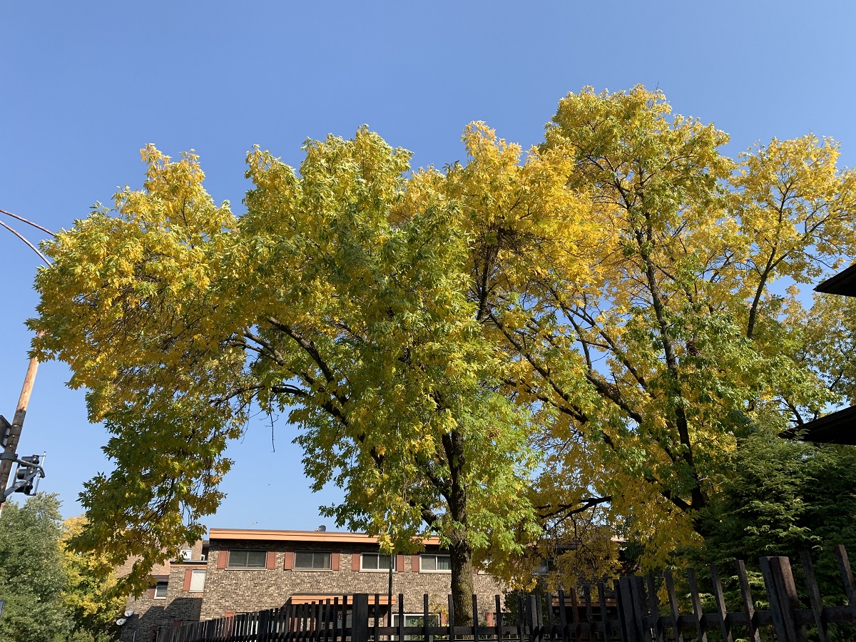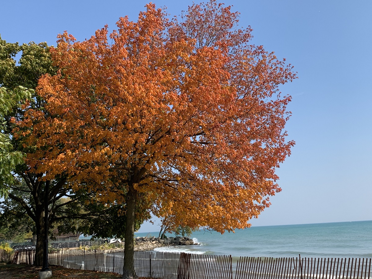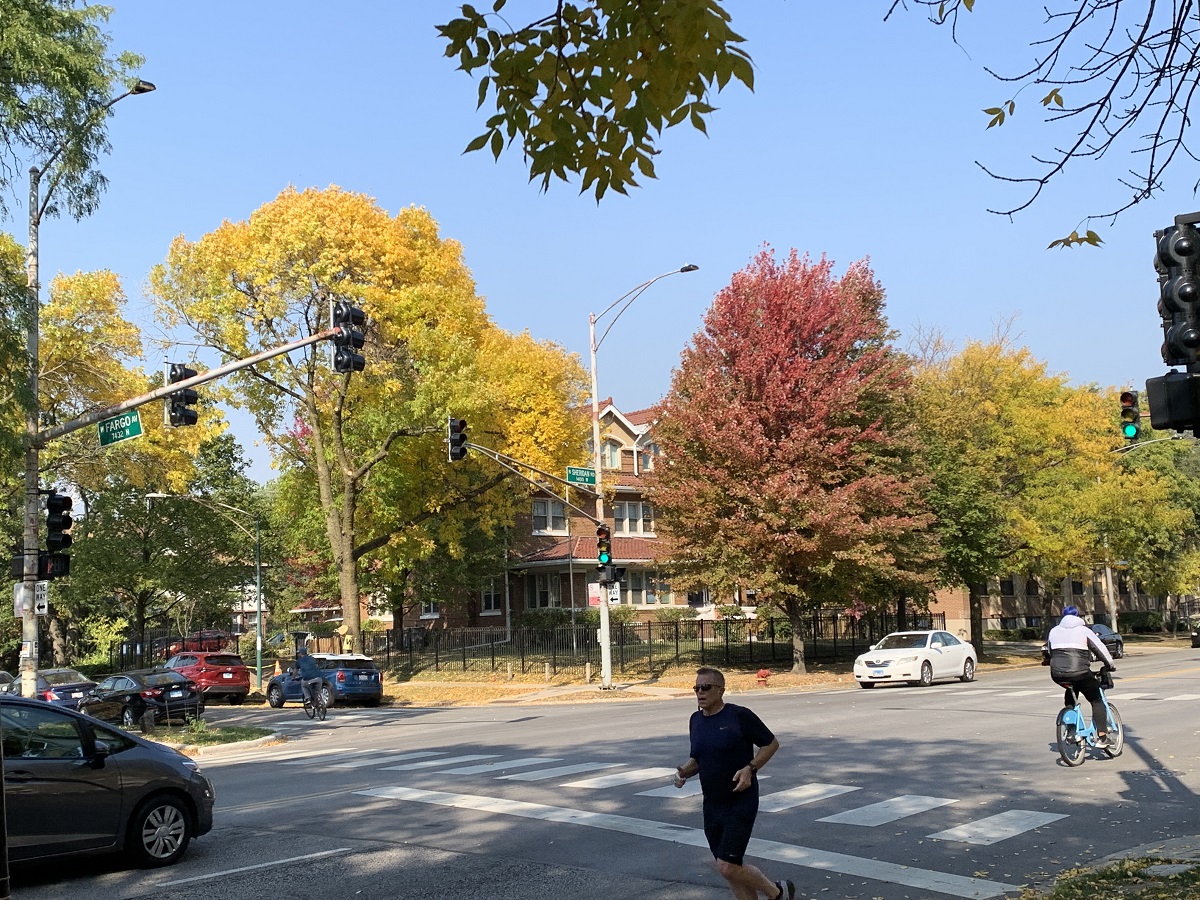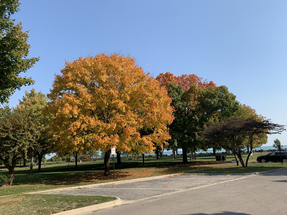 Yellow trees along Sheridan Road in Chicago just north of Loyola Park