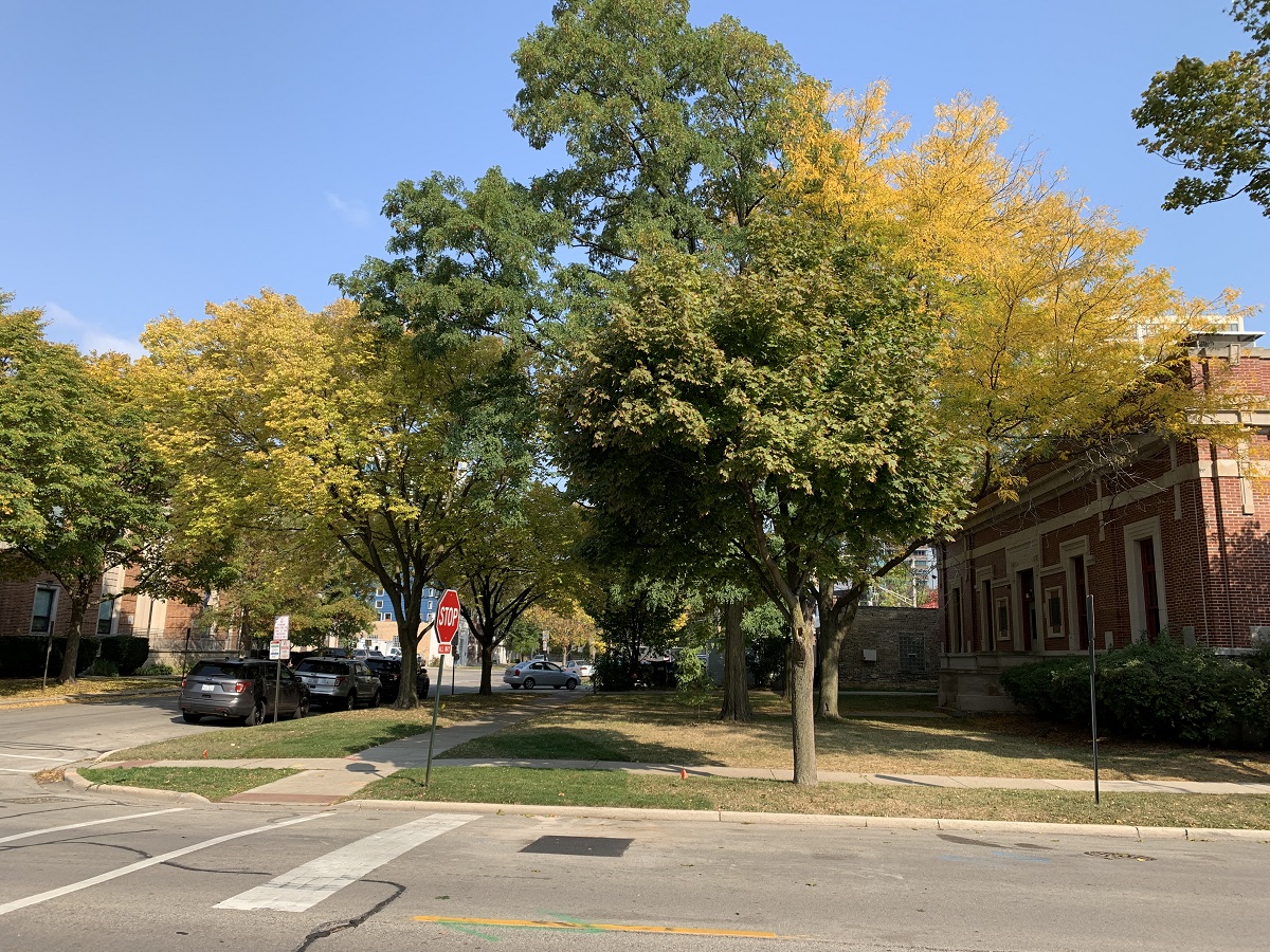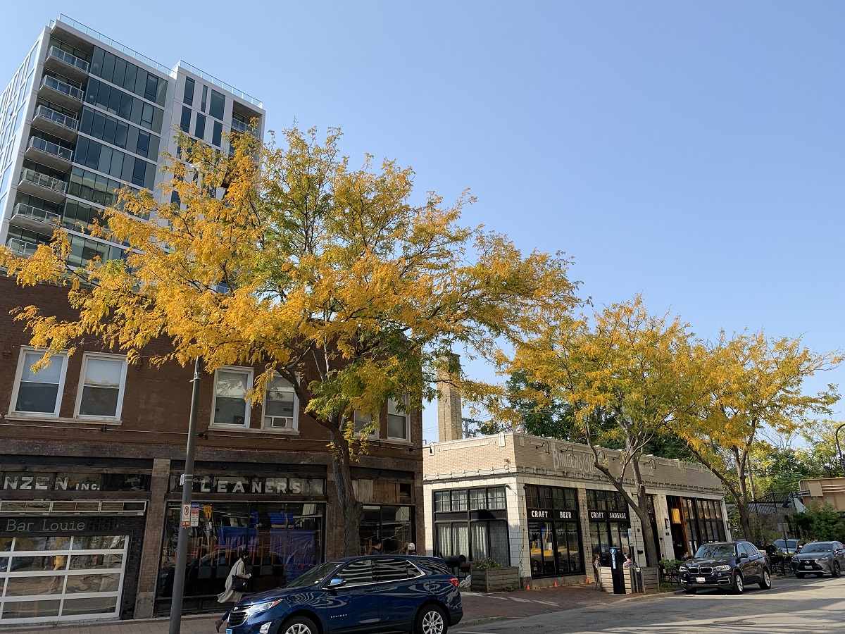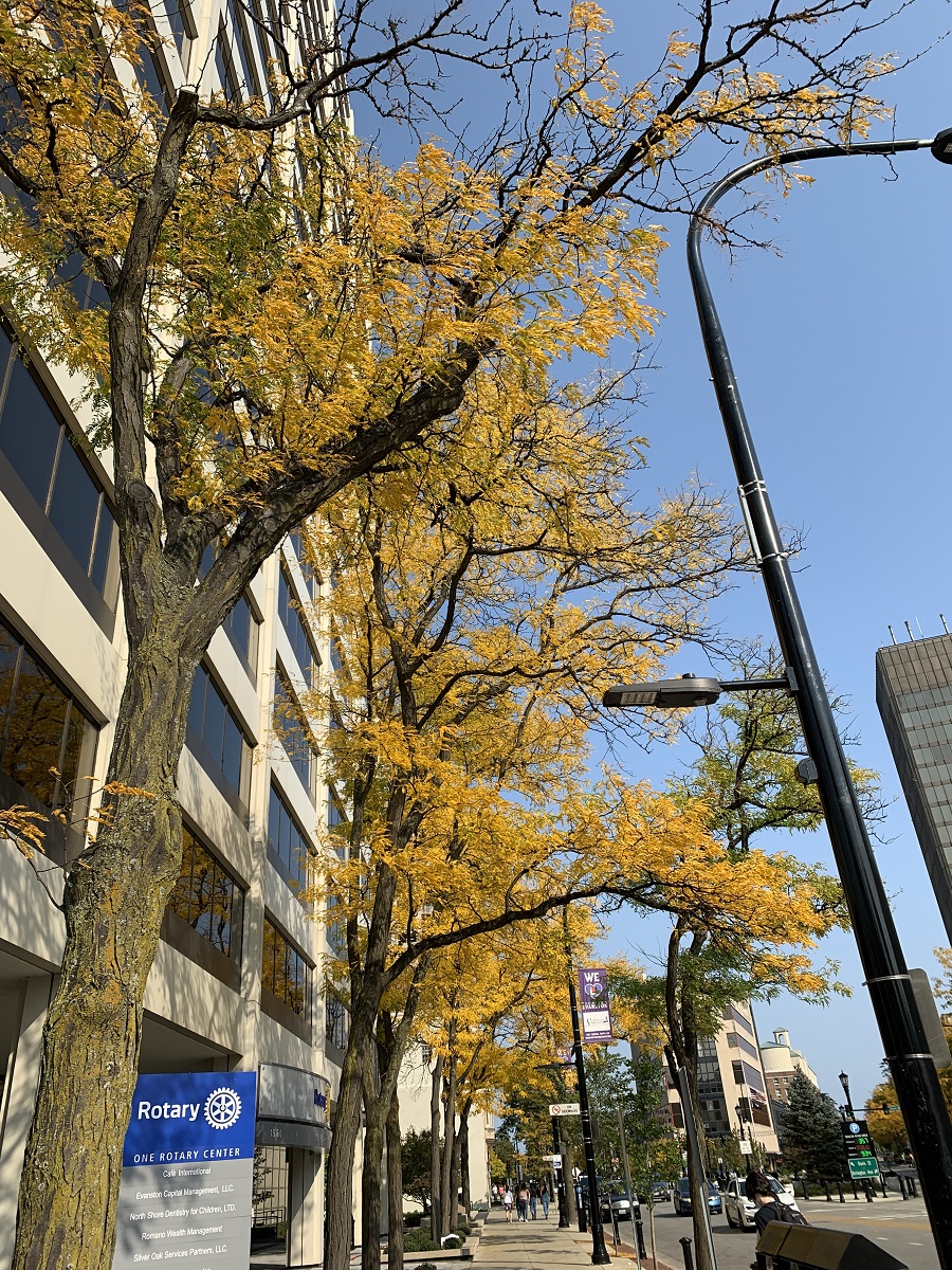 Yellow locust trees in downtown Evanston -- Saturday -- 10/10/20