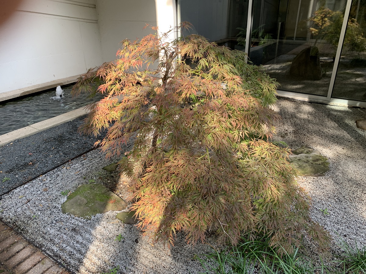 Red maple tree in Optima Towers court