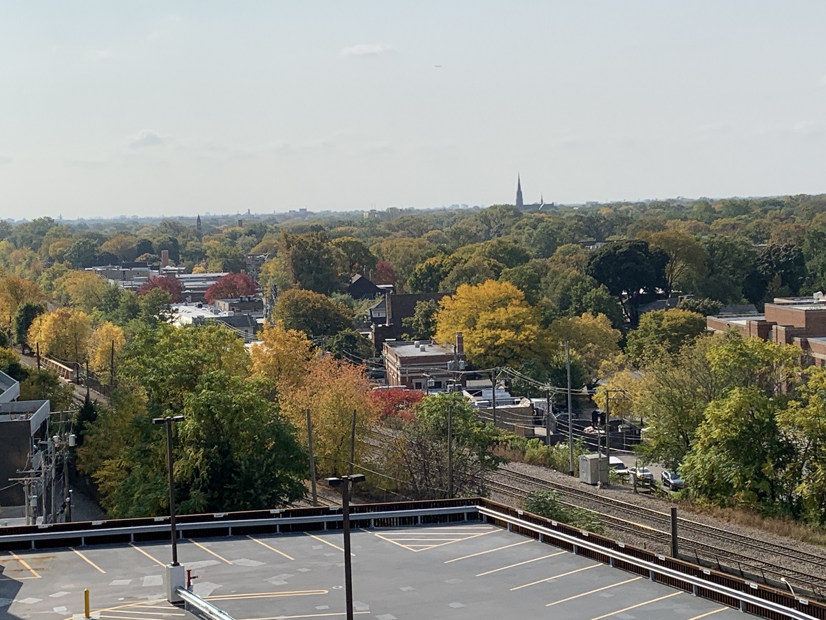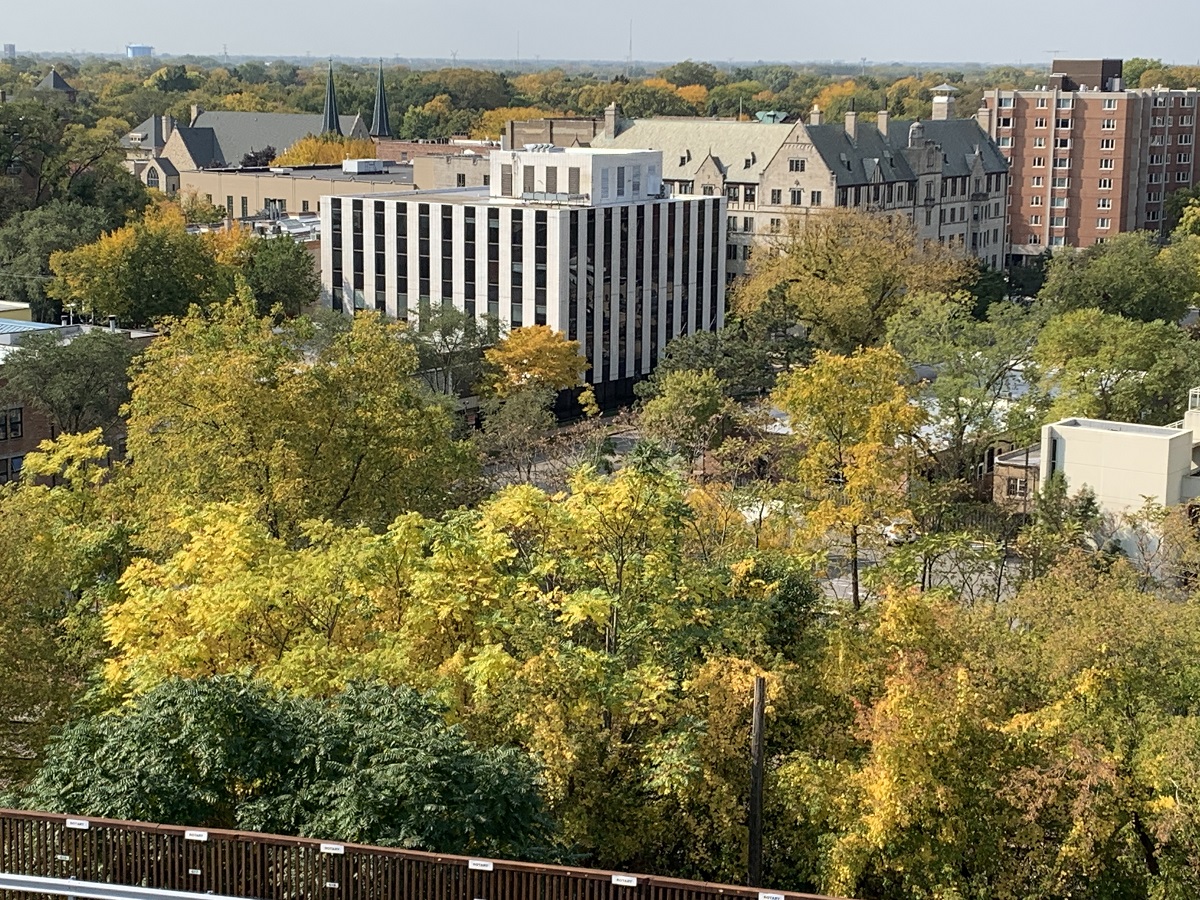 Some trees beginning to turn yellow, orange and purple at their tops from my balcony -- 10/10/20