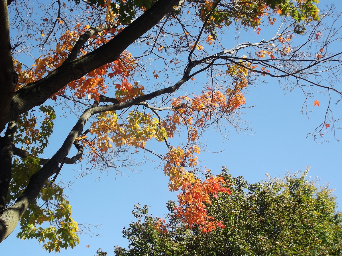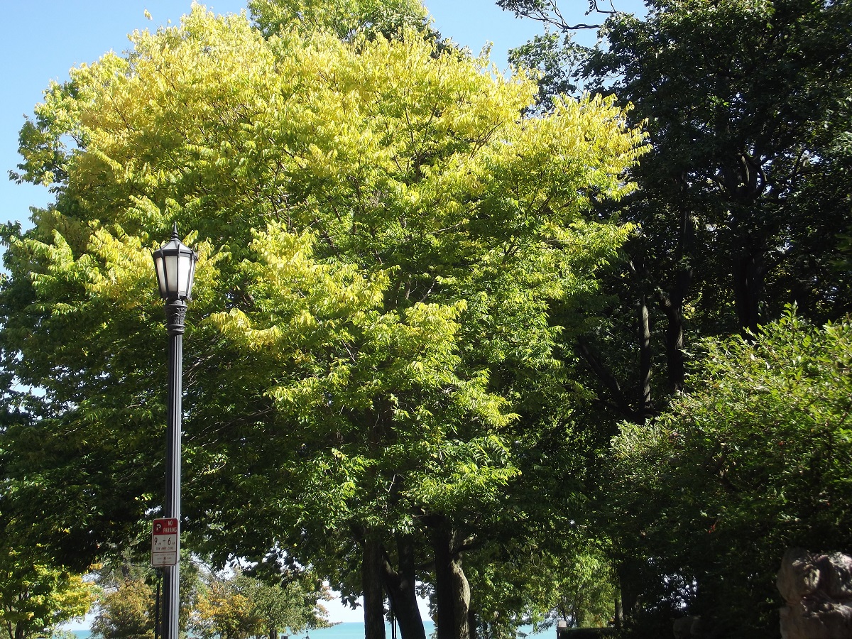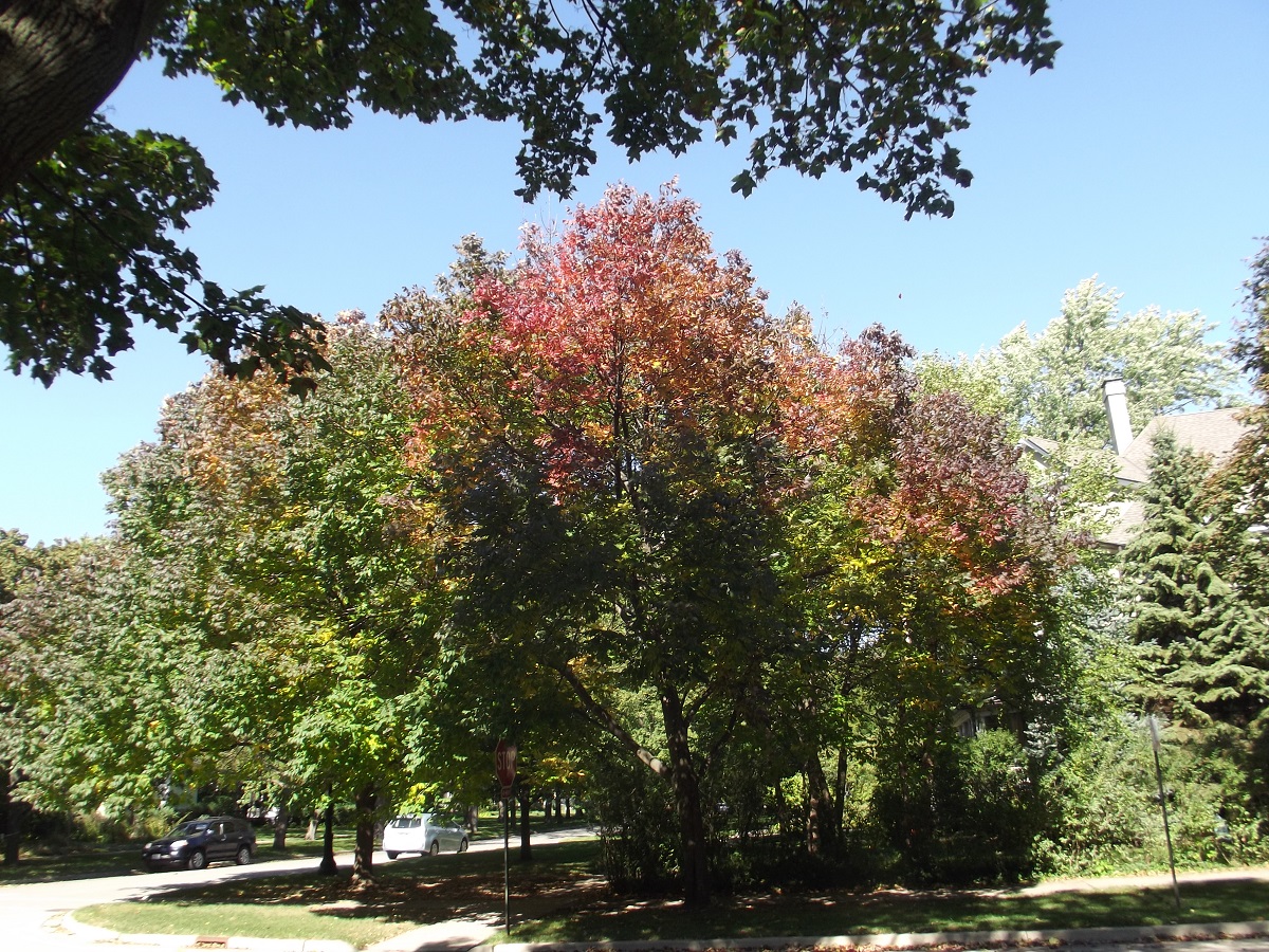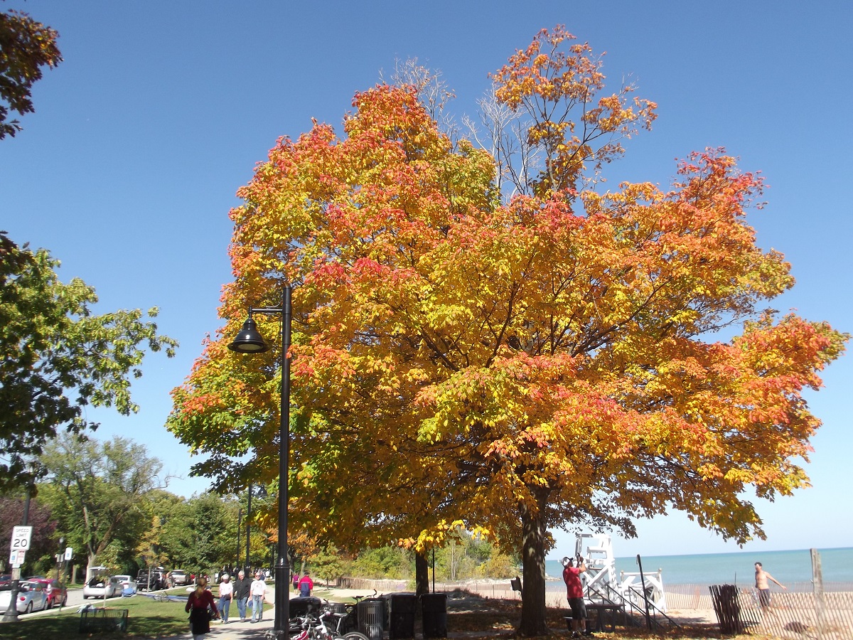 Orange and yellow trees around Lee beach where Omar is starting his sand castle -- to see click here