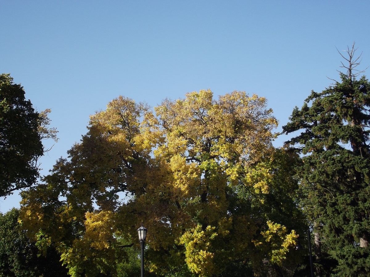 Large yellow tree south of Dempster on lakefront