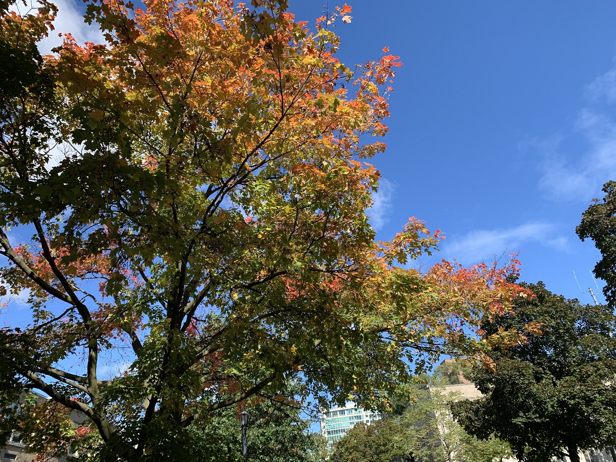 View south from my 11th floor balcony -- mostly still green, but a few yellow, purple