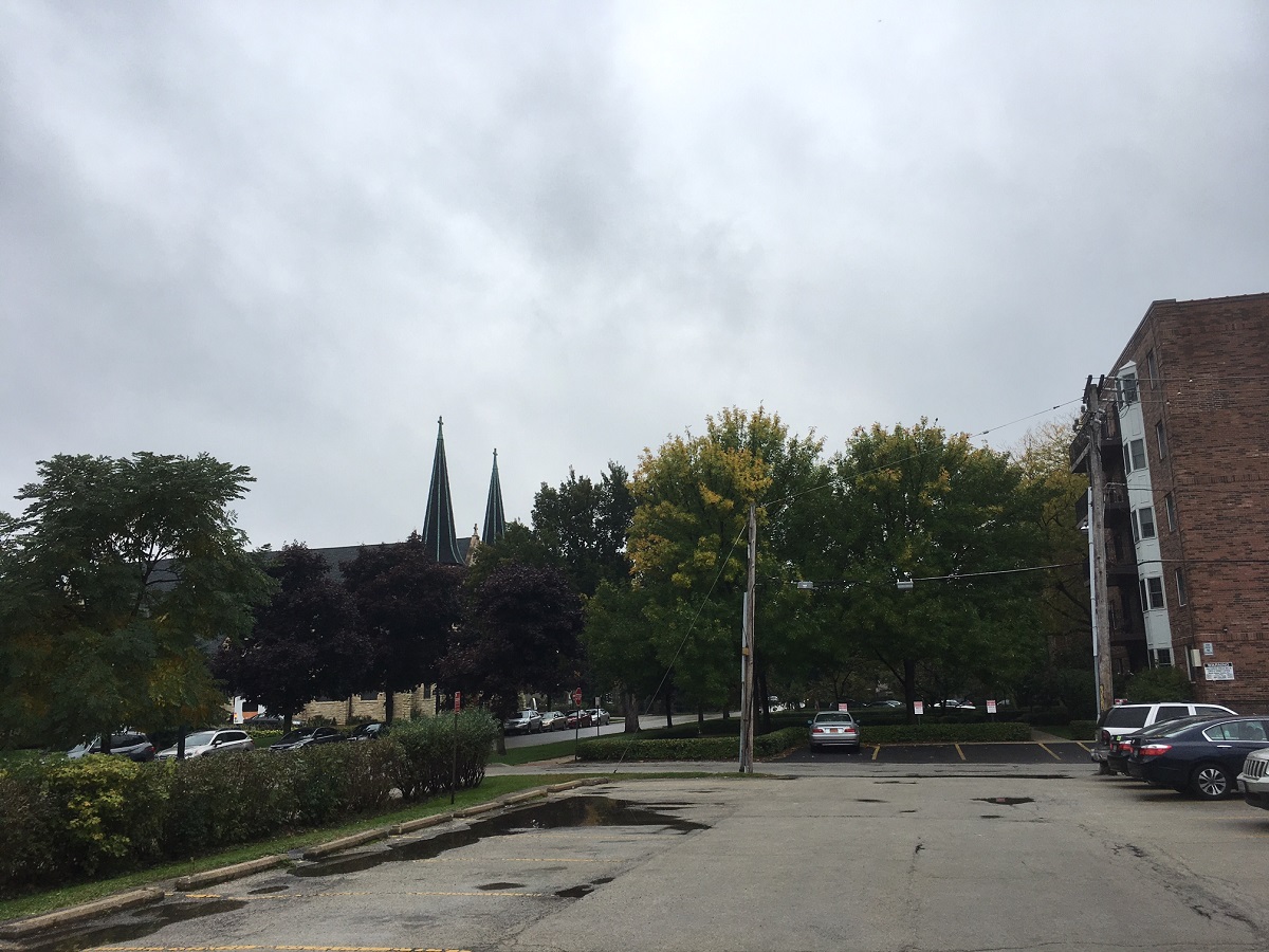 Dark purple then yellow trees along Lake near St. Mary's Church