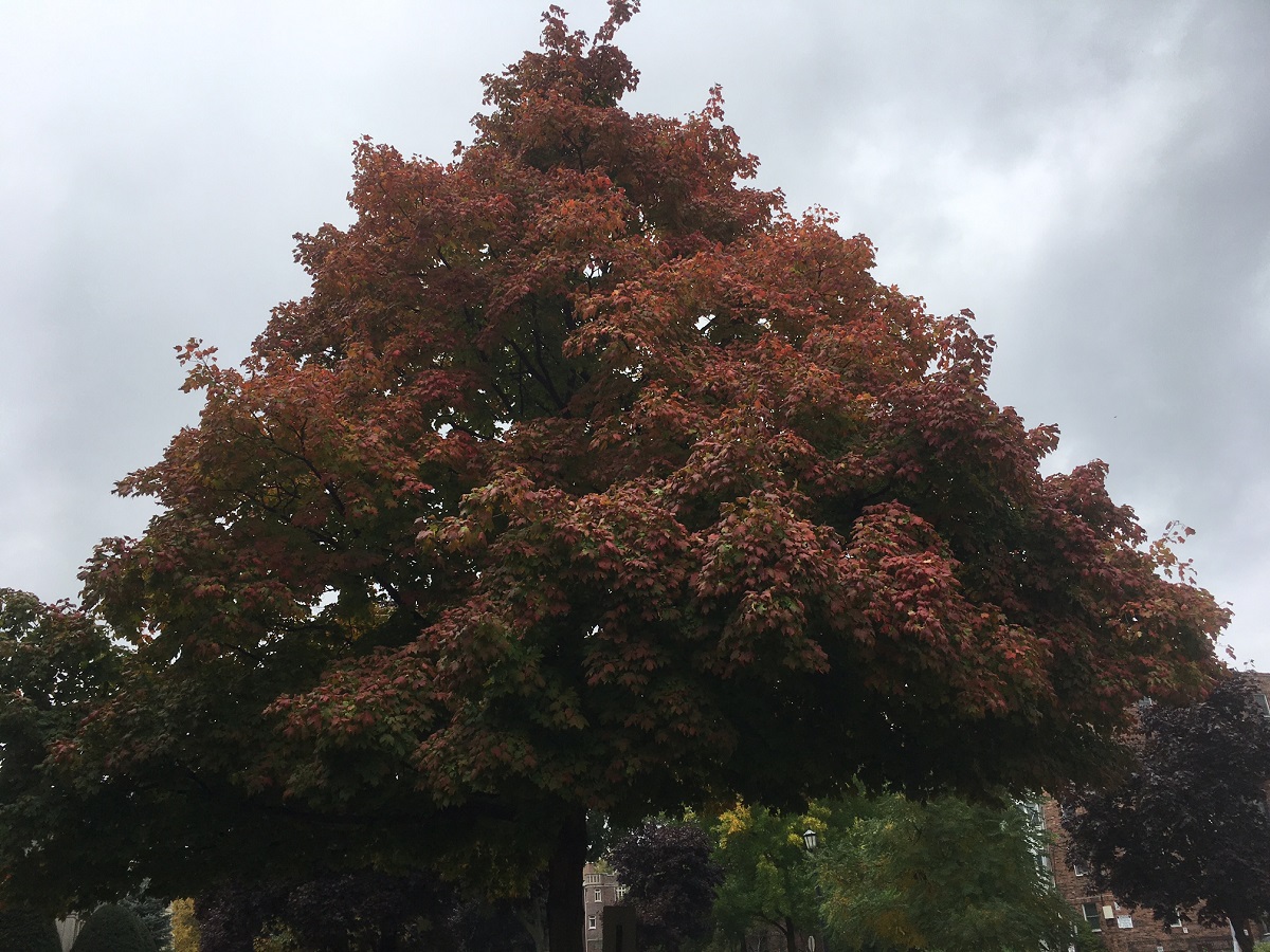 Orange maple tree on Maple Street south of Lake