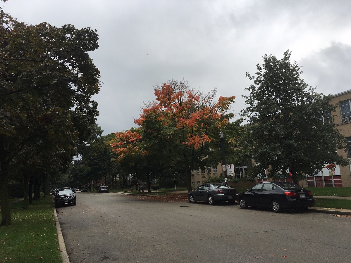 Orange and purple trees at Maple and Lake