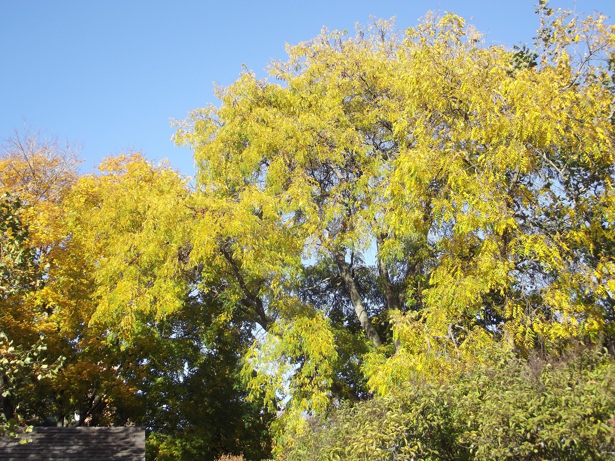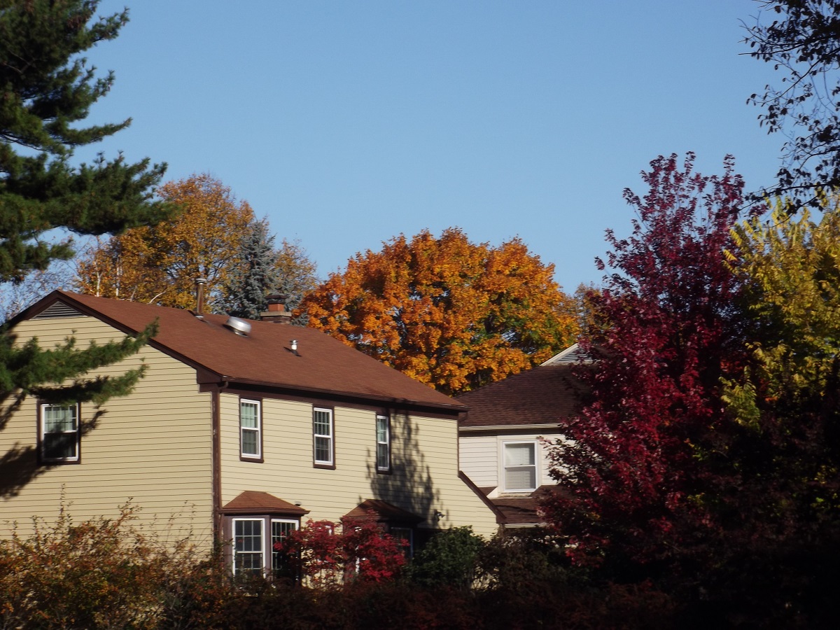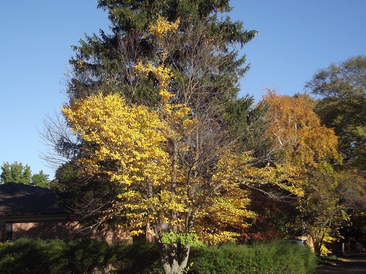 Large yellow trees west of Unitarian Church parking lot