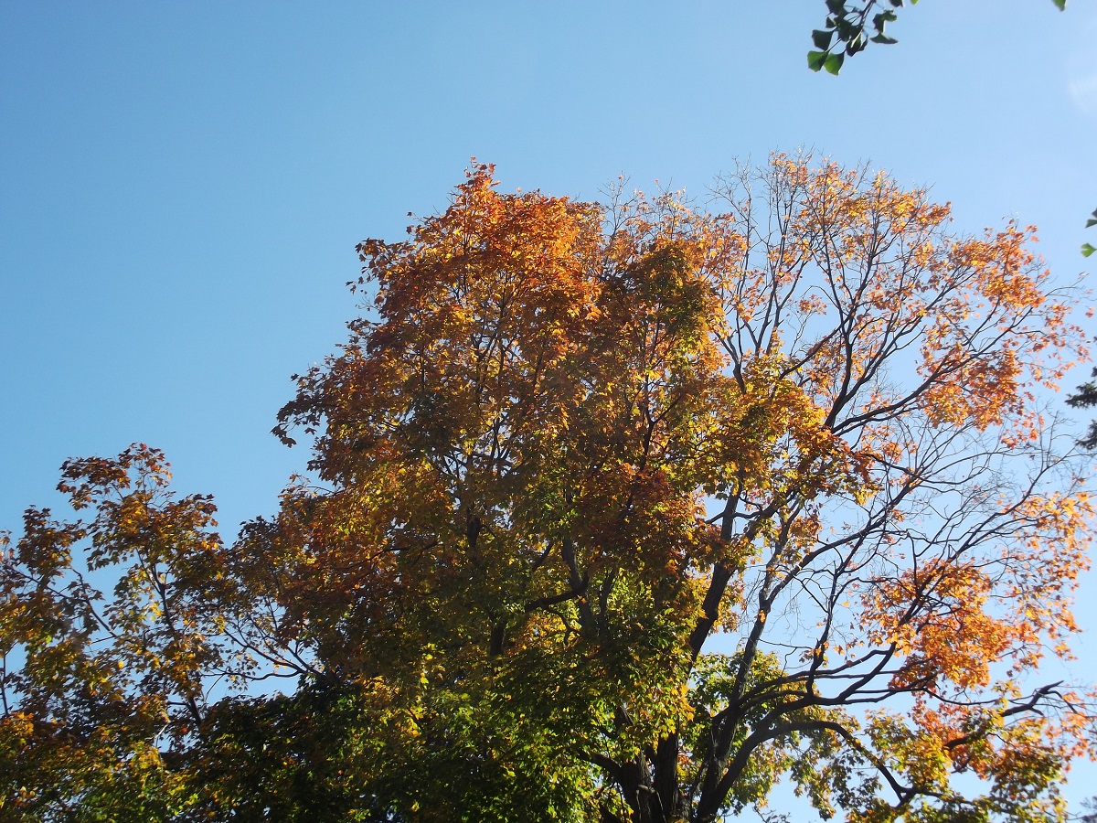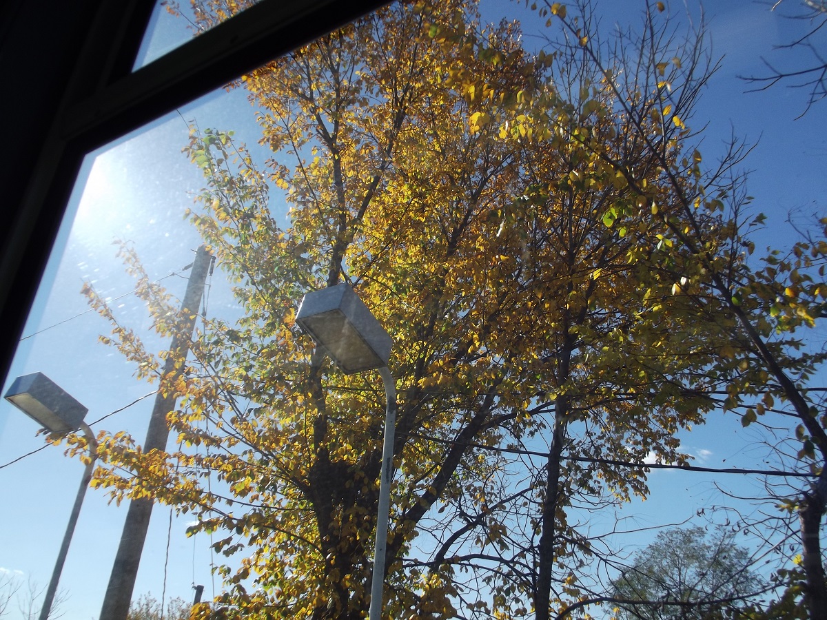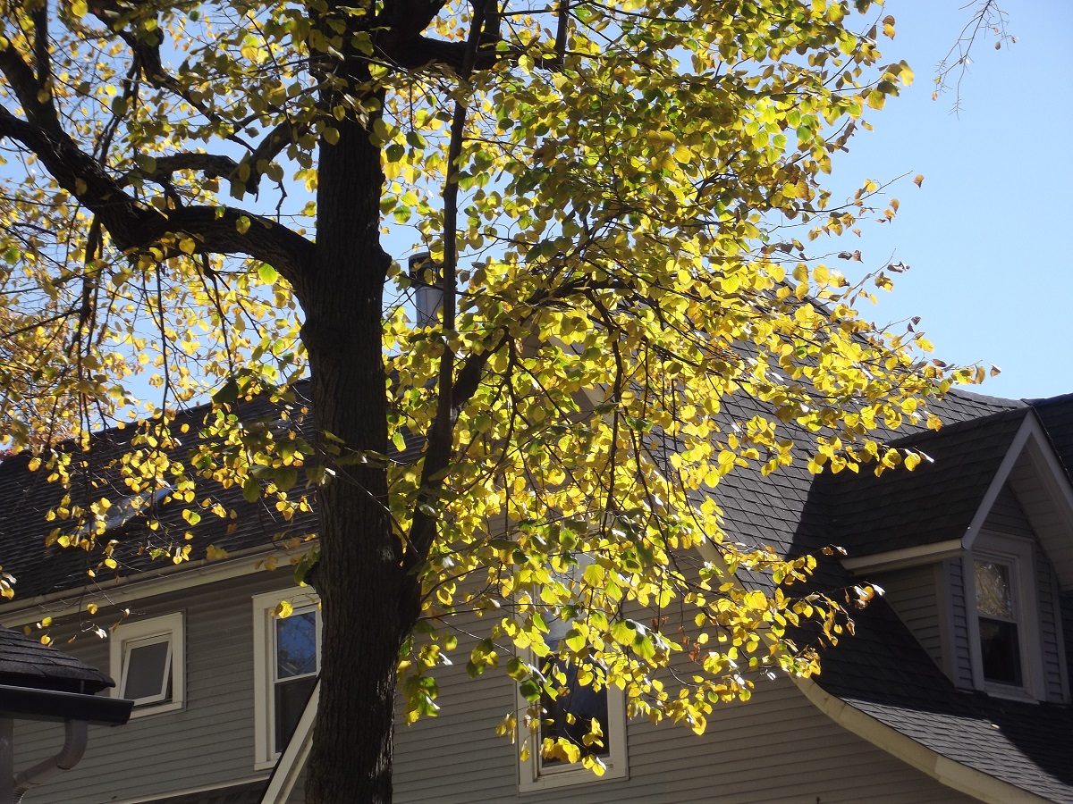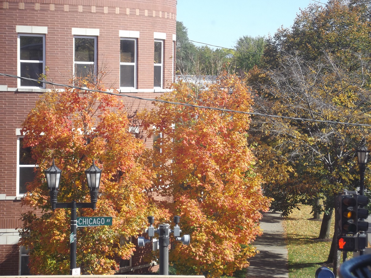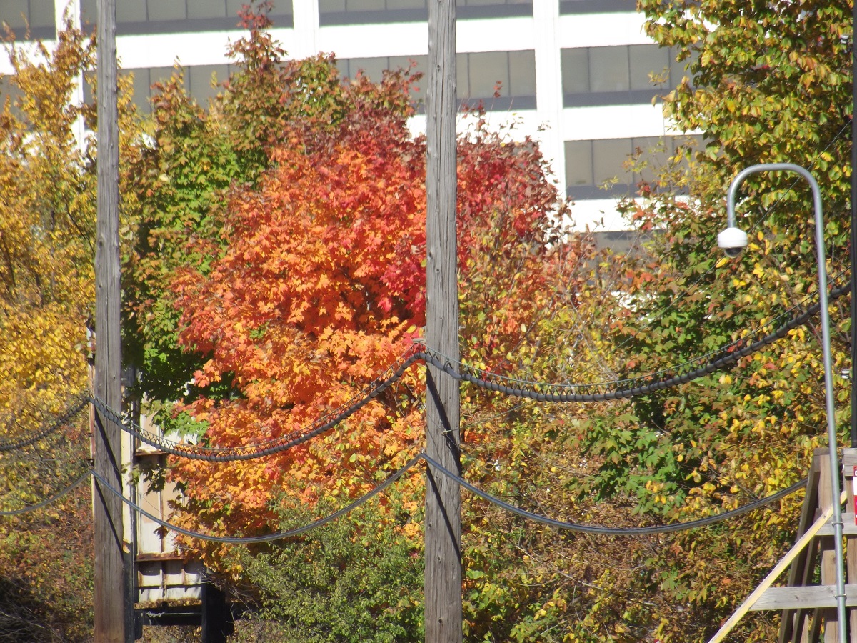 Telephoto of that same red/orange maple from the Dempster "L" station -- I was going into Chicago to Chair the UUSJ Environmental Task Force meeting that afternoon