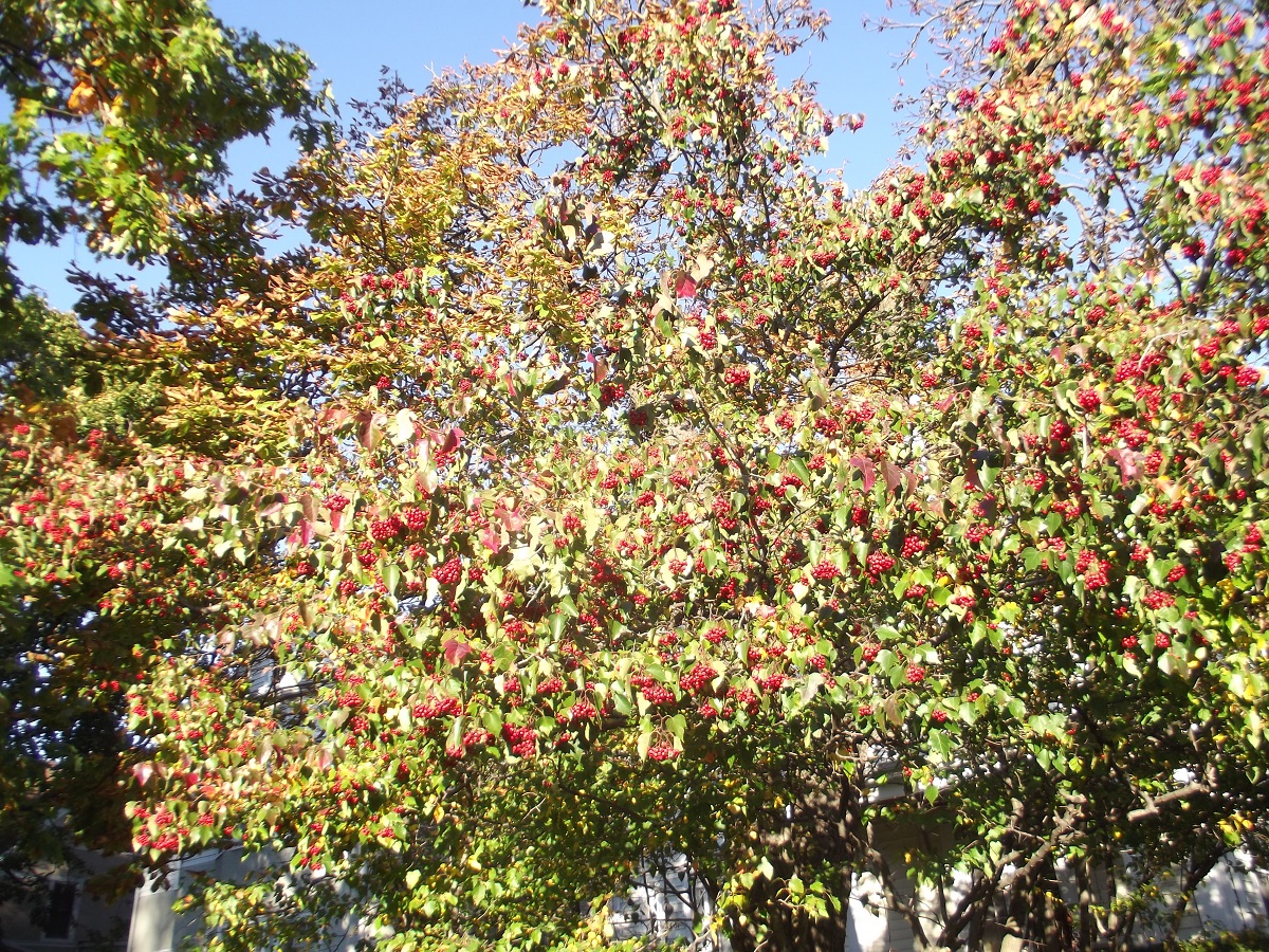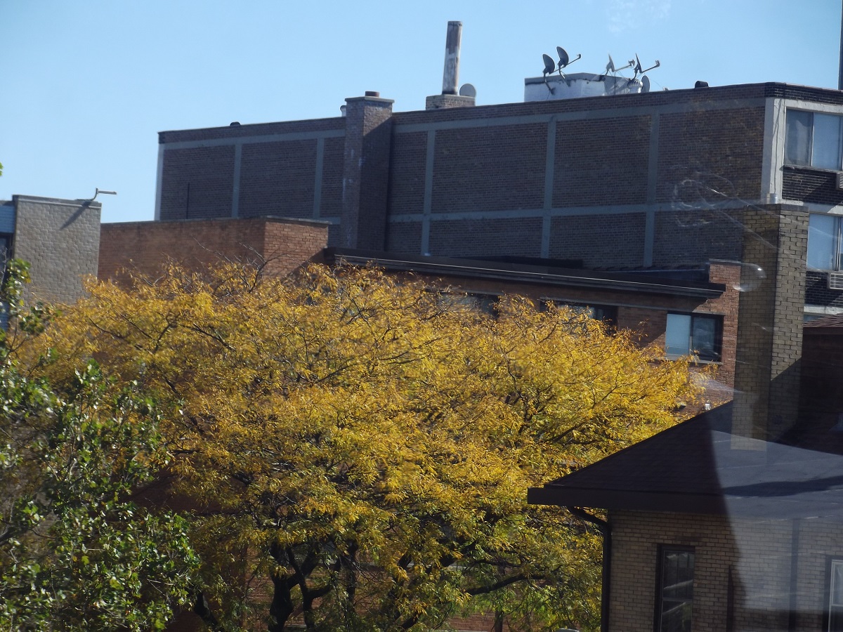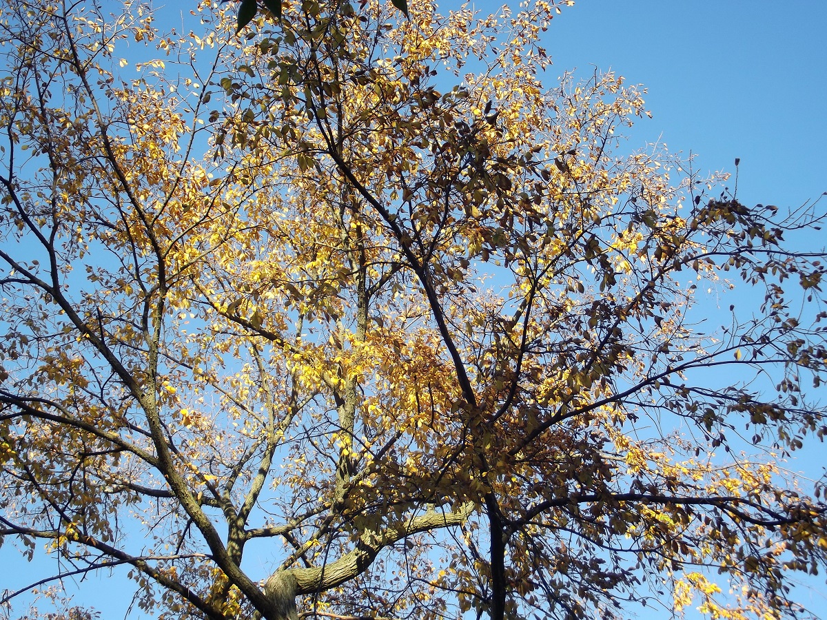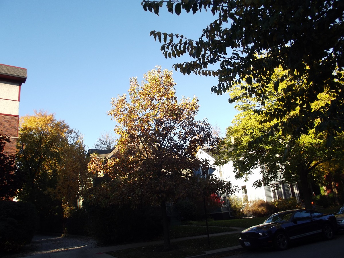 Over 3 hours later, after our meeting, with the sun a lot lower, and I had got off the train at Main, Evanston, the yellow tops of two trees at Lee and Hinman